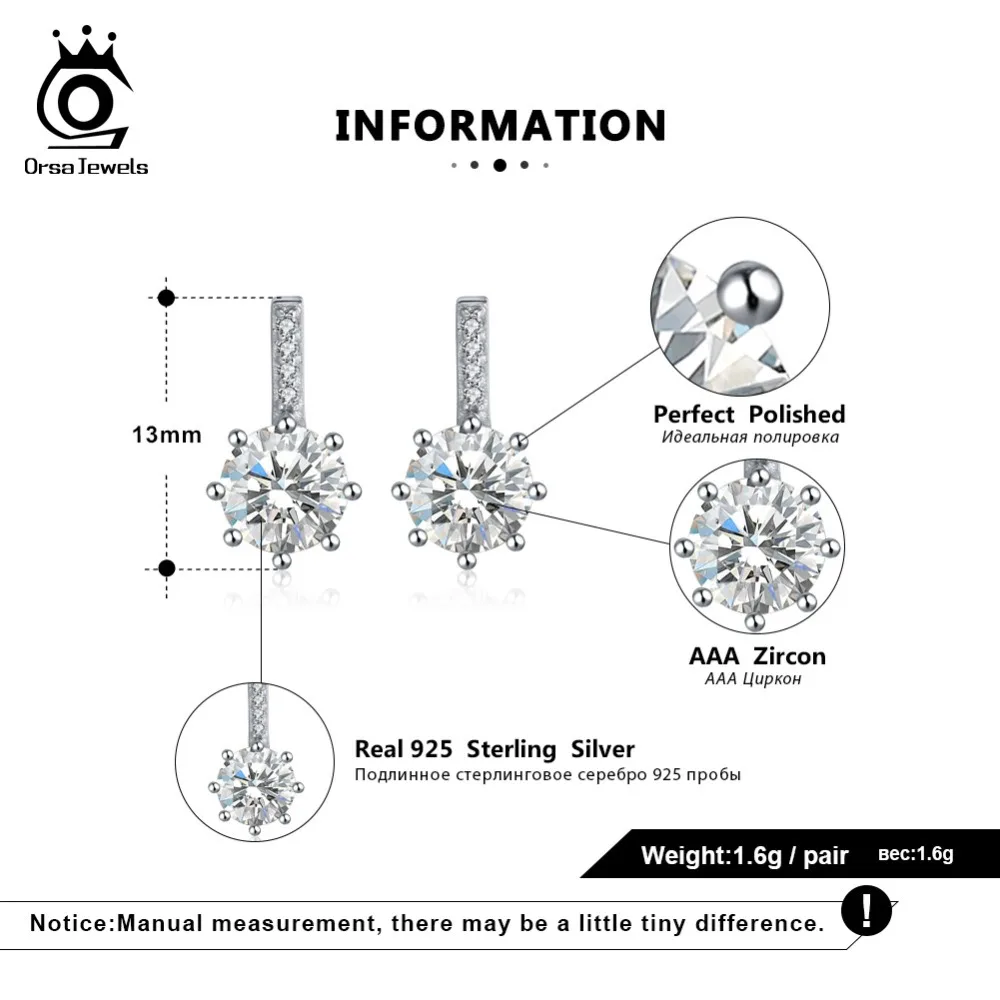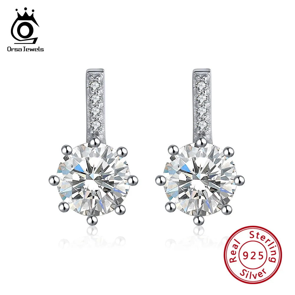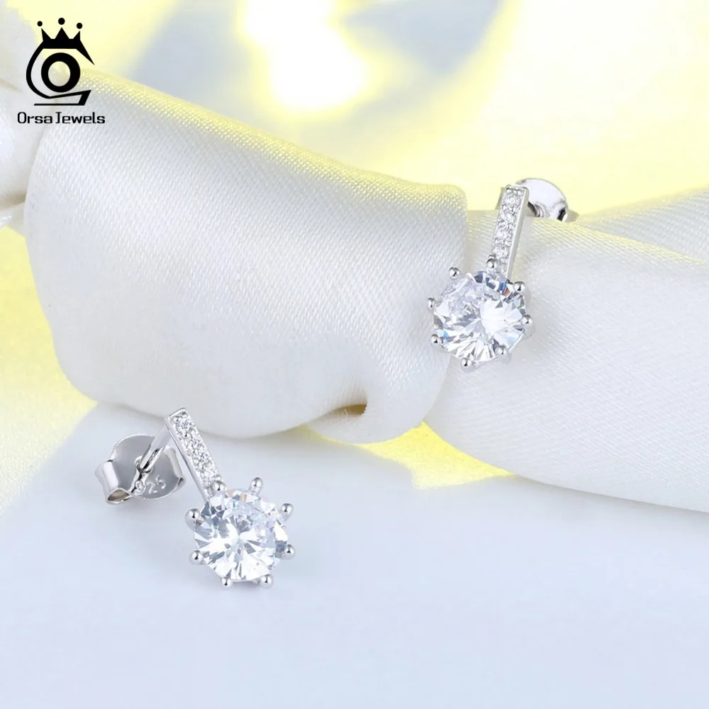 ORSA JEWELS 925 Стерлинговое Серебро, винтажные длинные серьги с AAA цирконием, серебряные серьги-гвоздики 13 мм, Женские Ювелирные изделия, свадебный подарок OSE109