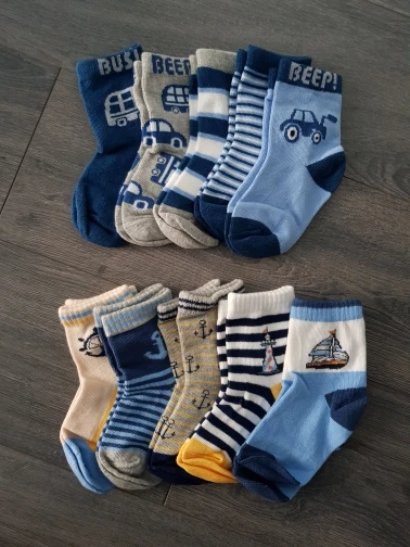 Сами носки супер ! Беру второй раз - после многочисленных стирок (приложила для сравнения на фото «старый» полосатый носок он только чуть подсел , а так никаких катышков и не растянулся) . Средней тёплости - не тонкие совсем , но и не слишком плотные . Единственное , что огорчило - перепутала размер и сразу после заказа несколько раз писала продавцу просила отметить заказ или поменять размер , но реакции вообще никакой ... хотя заказ ещё не был даже подтвержден продавцом и по правилам заказ я могу отменить до подтверждения . В итоге так ничего не ответили, заказ не отменили и просто выслали (( Размер 2Y отлично подошёл нам в 1,5 года (у сына 22-23 размер ноги сейчас ) есть небольшой запас - думаю до 24 размера норм будет .