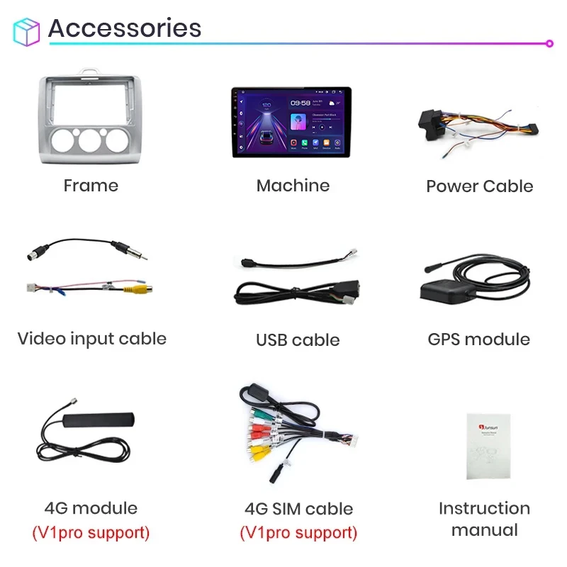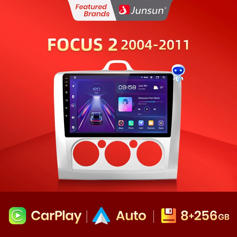 Junsun V1 CarPlay Автомагнитола Магнитола Мультимедиа автомобиля для Форд Фокус 2 3 Mk2Mk3 2004-2011 for Ford Focus Android auto 4G GPS трекер навигатор 2 DIN 2 дин андройд Аудио Автомагнитолы