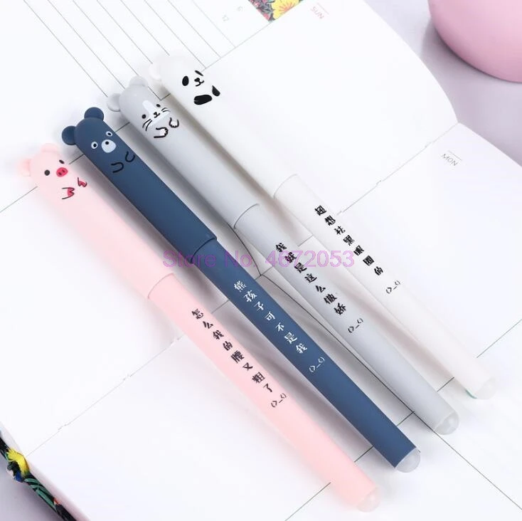 2000 шт.лот, Мультяшные животные, стираемая ручка, 0,35 мм, милая панда, кошка, волшебные ручки, кавайные гелевые ручки для школы, новинка, канцелярские принадлежности