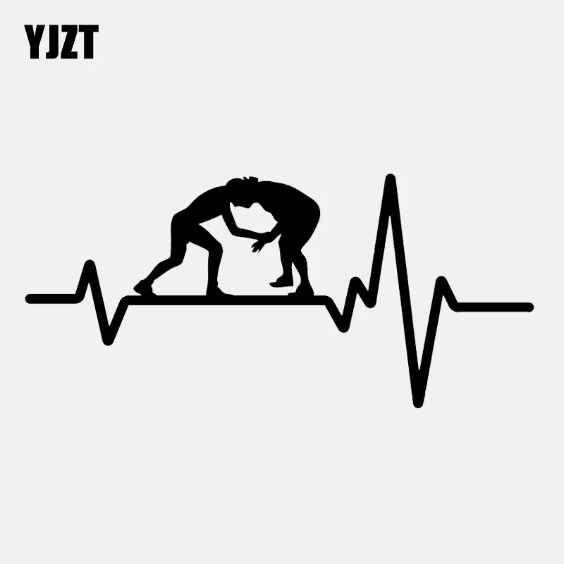 YJZT 15,7 см * 7,3 см Wrestling Greco Roman Grappling Heartbeat виниловый черный/серебристый автомобильный стикер C22-1204