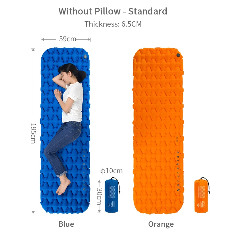 Посылка пришла быстро. Проверил матрас. Надул. повалялся - зачет !!! Места занимает минимум! Длина с хорошим запасом при 185 см моего роста. Вдвоем с супругой помещаемся тоже места по ширине с хорошим запасом. Под матрас засовывал огурцы. Не чувствуется. Хоть бы хны! Заключение - матрас места занимает минимум. На нем мягко лежать. Советую любителям путешествий.