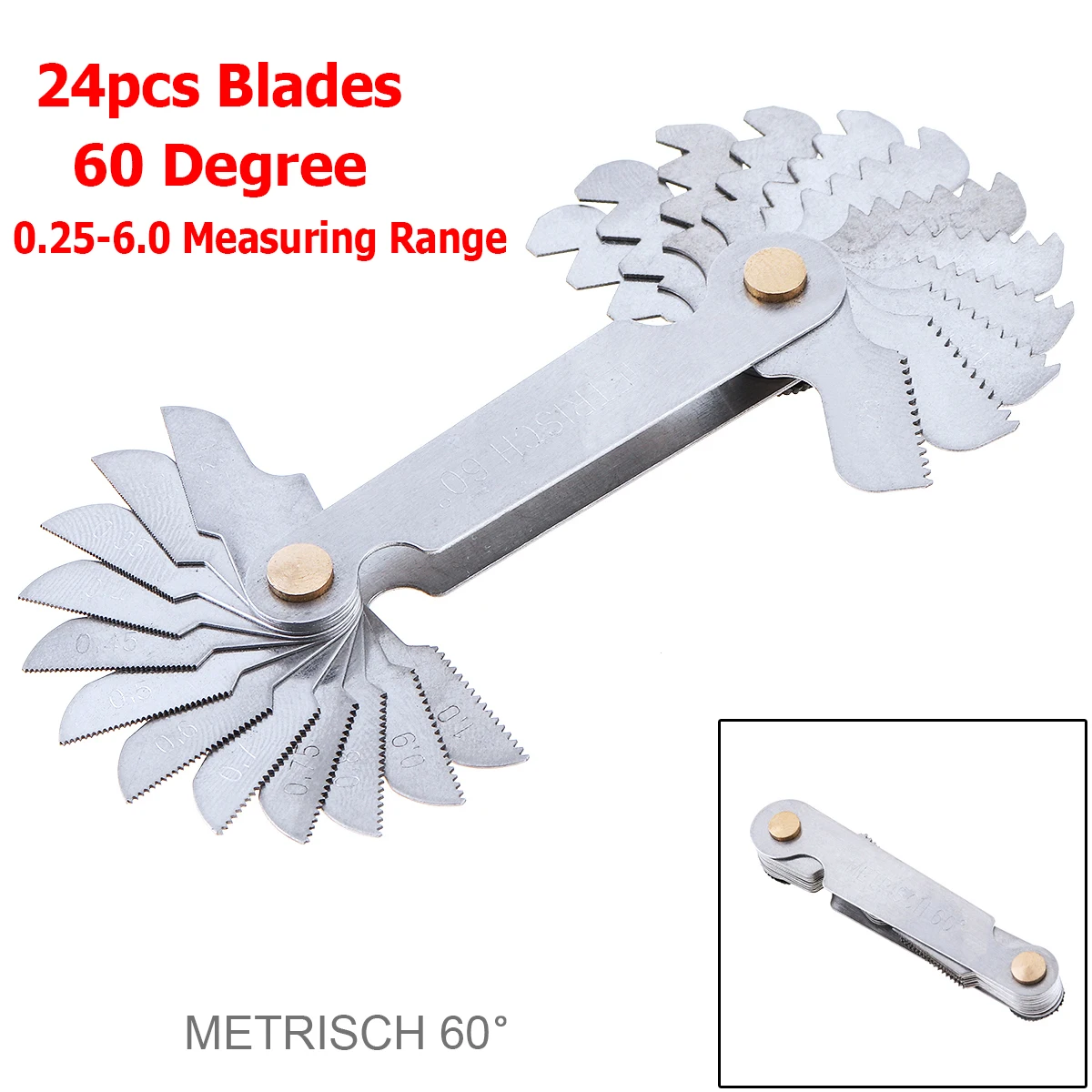Измеритель шага резьбы из нержавеющей стали, измерительный инструмент складной с лезвиями 2024 шт., 55 и 60 градусов