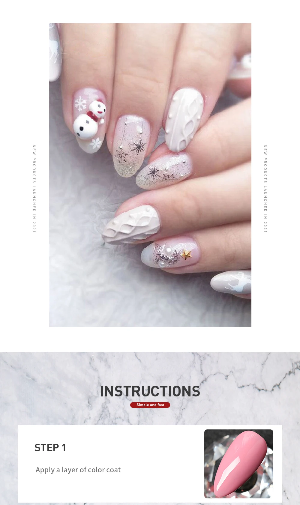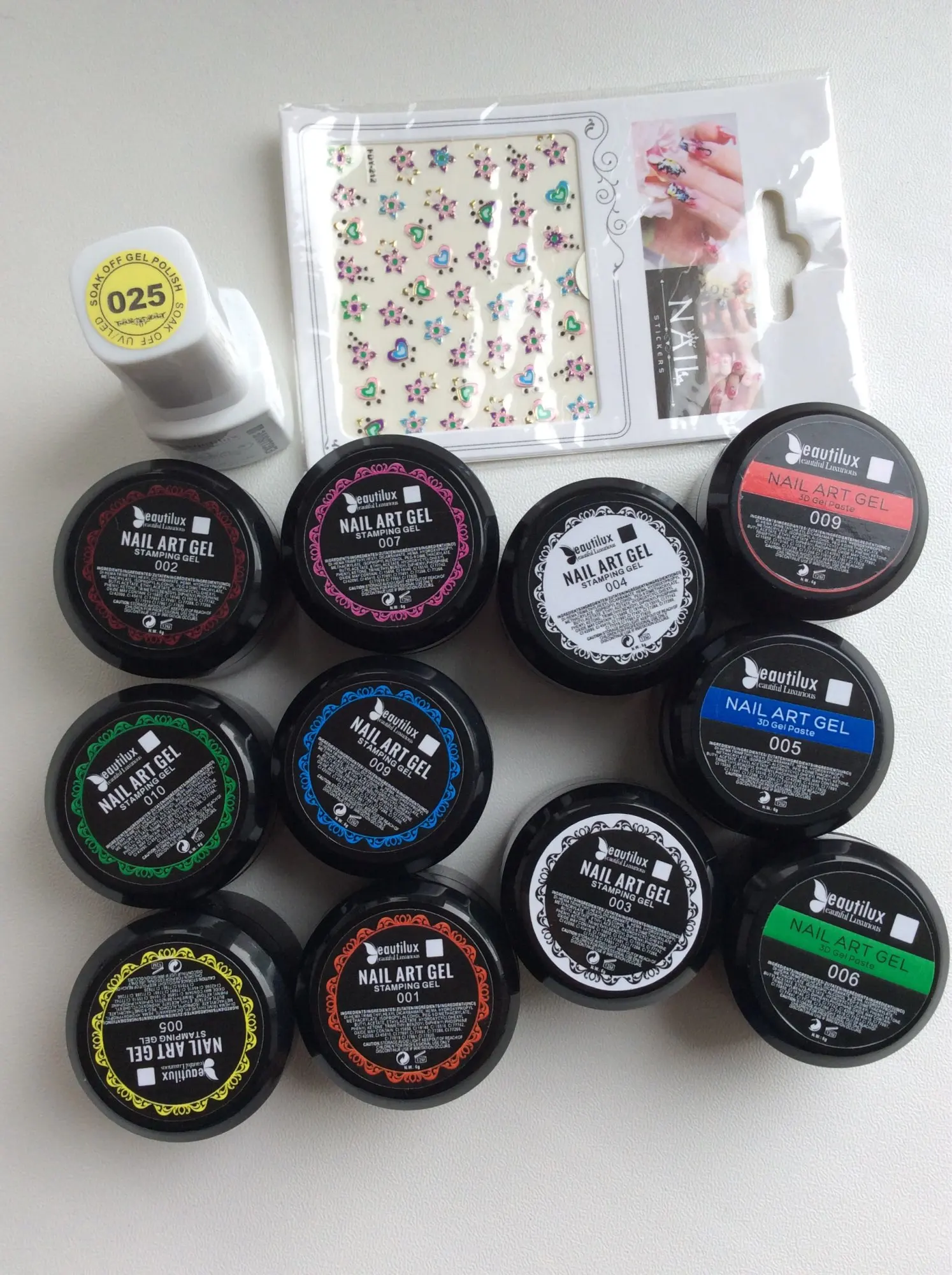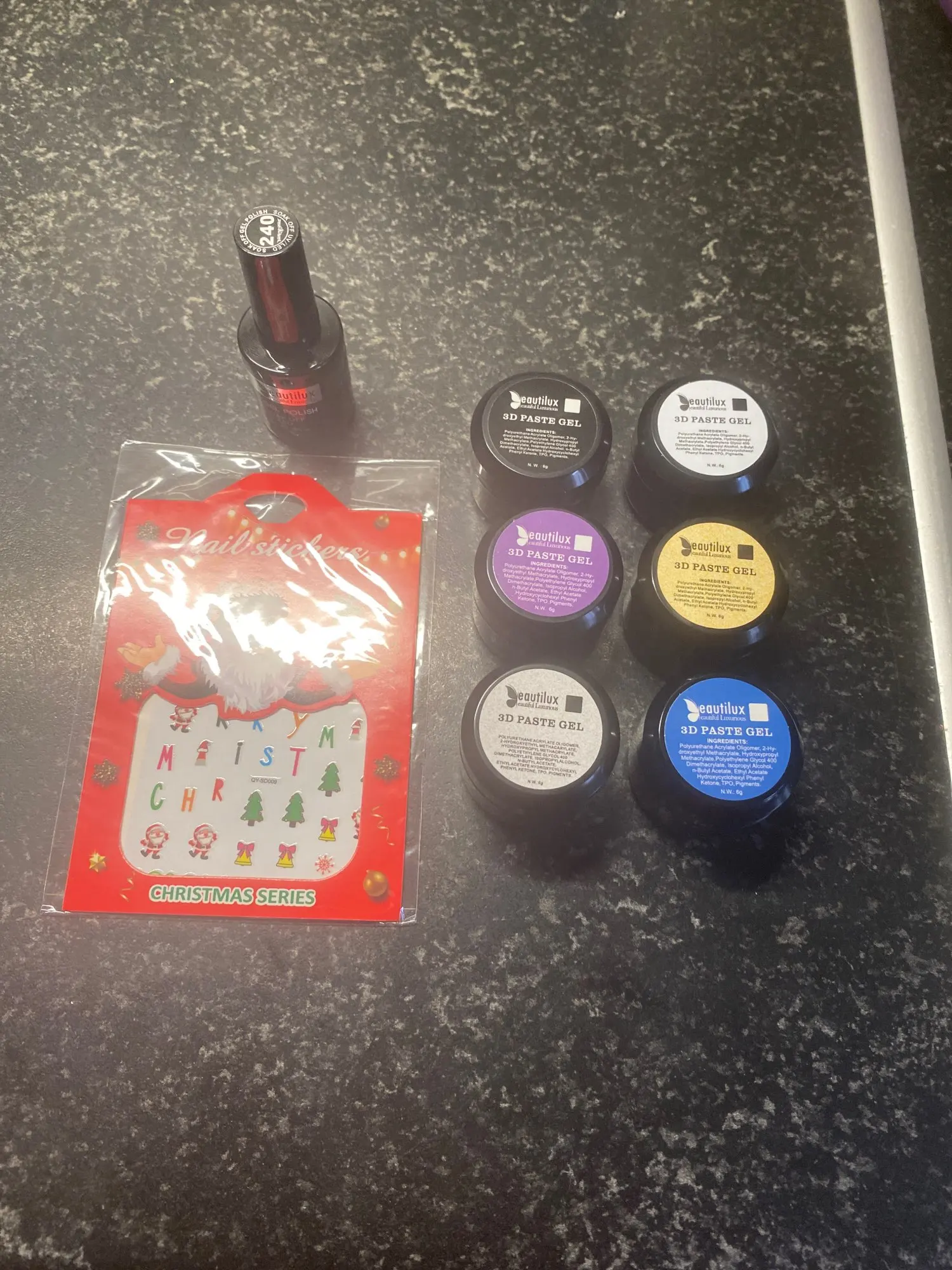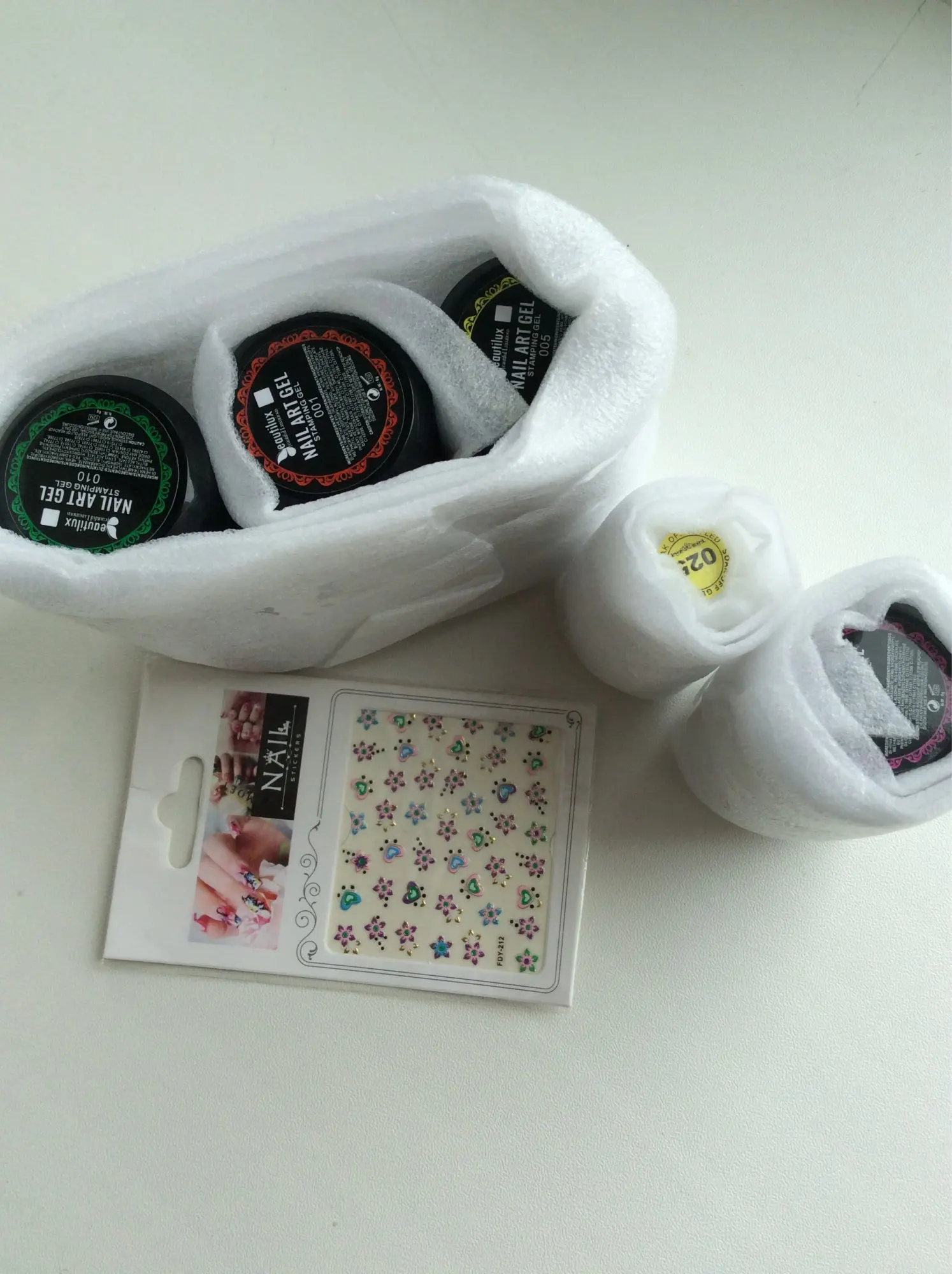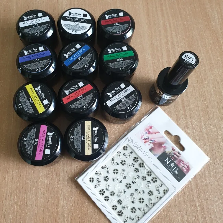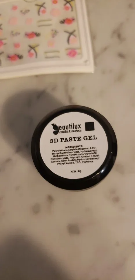доставка долговатая, 1,5 месяца, продавец положил подарочек - наклейки, очень приятно , продукция этого бренда отличная, 3д паста отличная, лак полупрозрачный, но пигментация супер, из-за того, что в нем крупные блёстки потребуется выравнивание топом