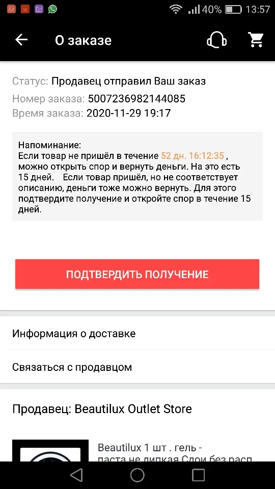 Заказ не получила
