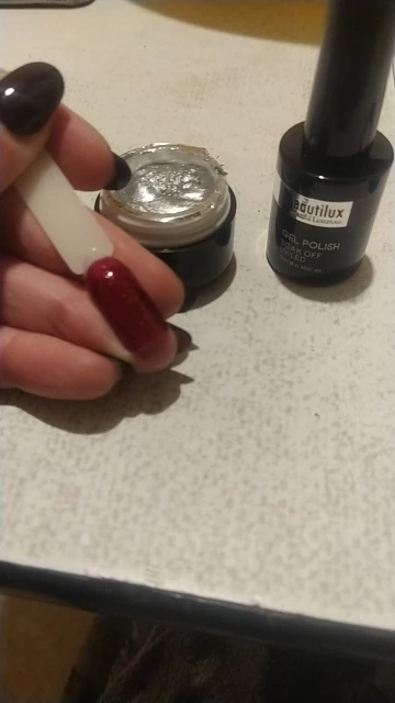 Очень плотная гель-паста, на ногте выглядит практически как фольга. Пока ждала заказ, успела забыть, что должно прийти:D Очень удивилась своему выбору, но в итоге понравилось!