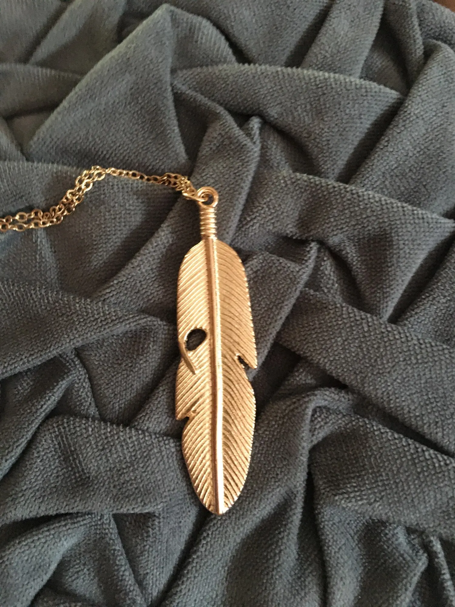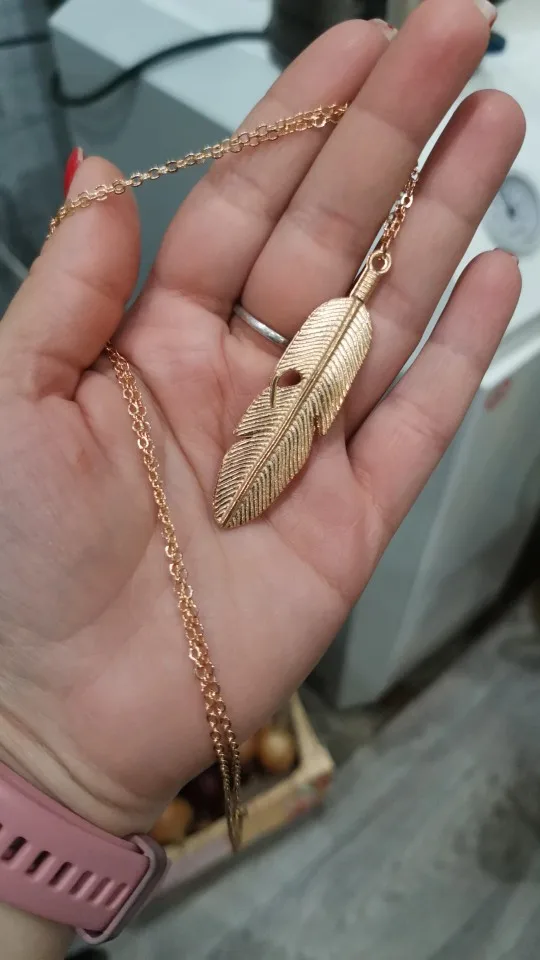 Ожерелье женское с кулоном в виде пера, простой золотистый м