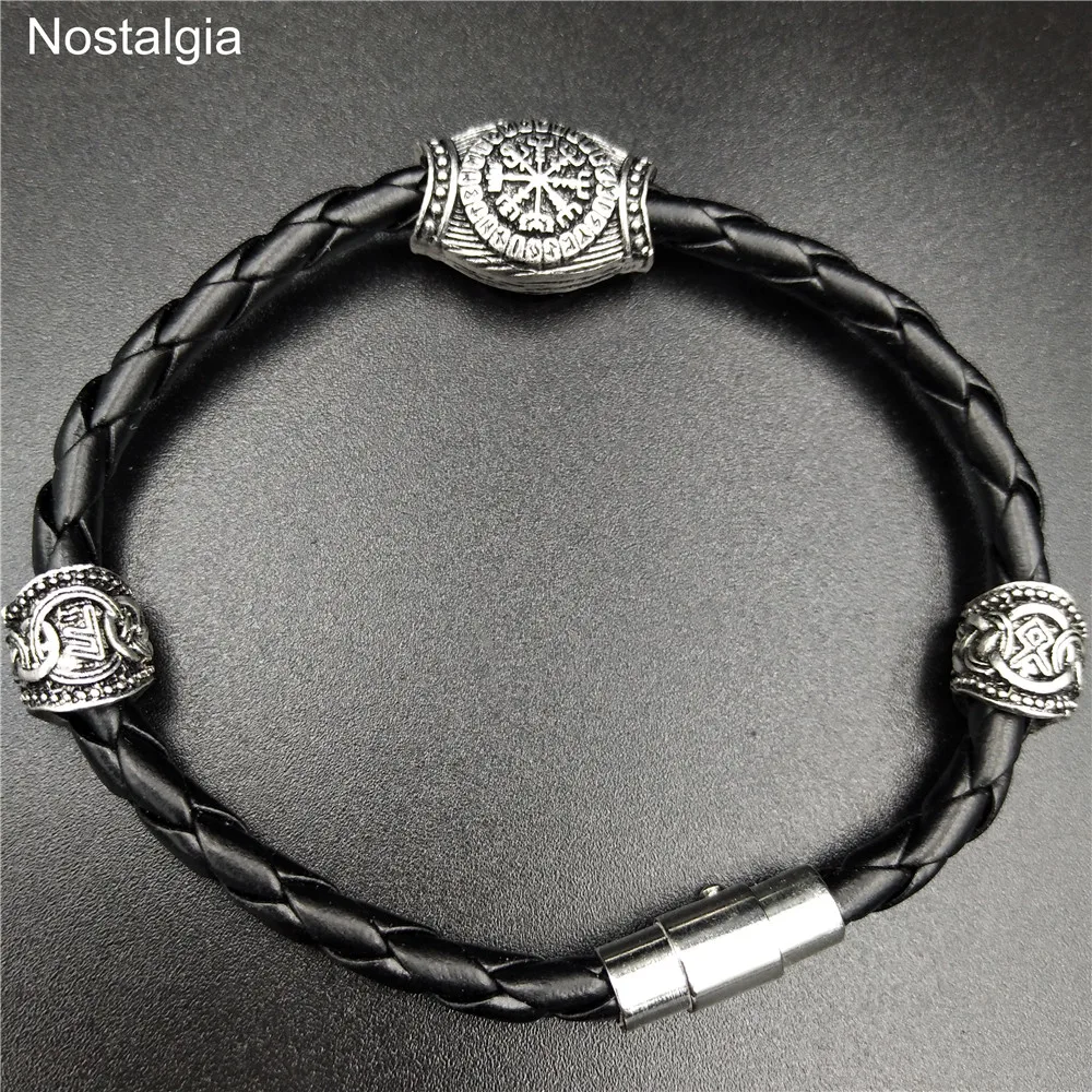 Браслет Vegvisir для мужчин, Магнитный кожаный браслет руны викингов бусины компас