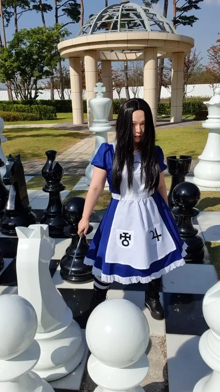 Косплей-костюм Элис из игры безумие возвращается, костюмы на Хэллоуин, платья горничной, фартук, платье для женщин и девочек, размера плюс костюм и парик