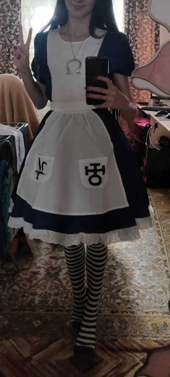 Заказывала только платье, размер S. Пришло такое же, как и на фото, доставили быстро. Ткань фартука отличается от ткани платья, бант недостаточно большой, в общем, этого и ожидала изначально, буду его дорабатывать, в таком виде на косплей не годится. В качестве основы, если не умеешь шить - самое то.