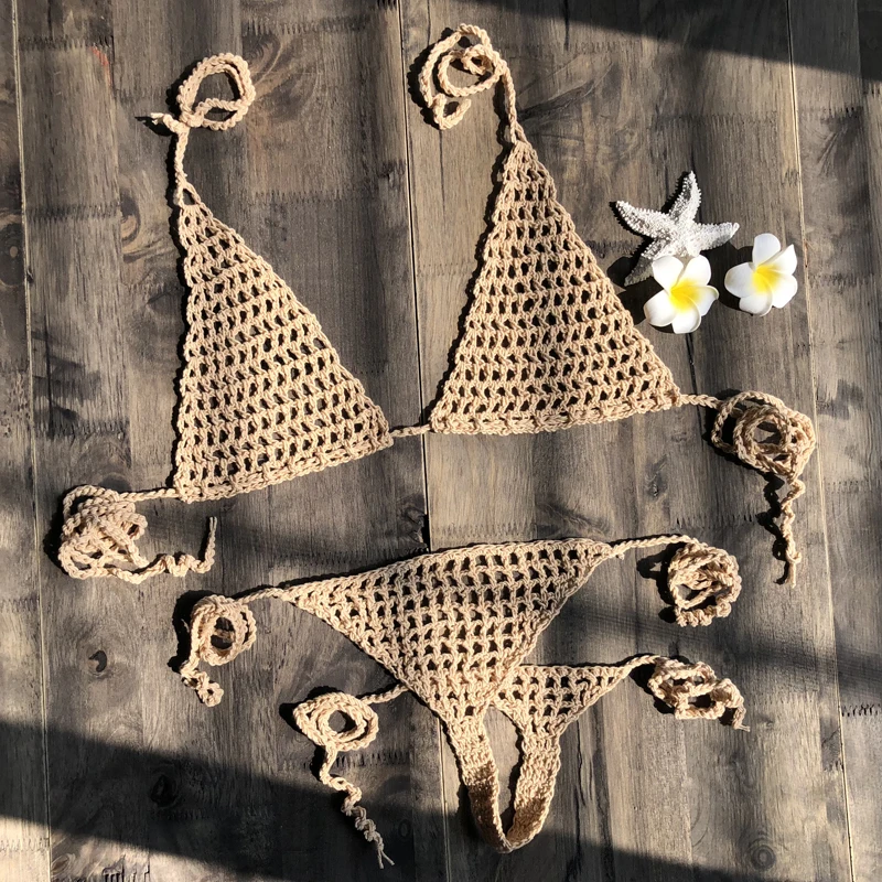 Новинка 2019, вязаное микро бикини ручной работы, стринги, пляжные микро купальники, сексуальные комплекты нижнего белья, горячая распродажа