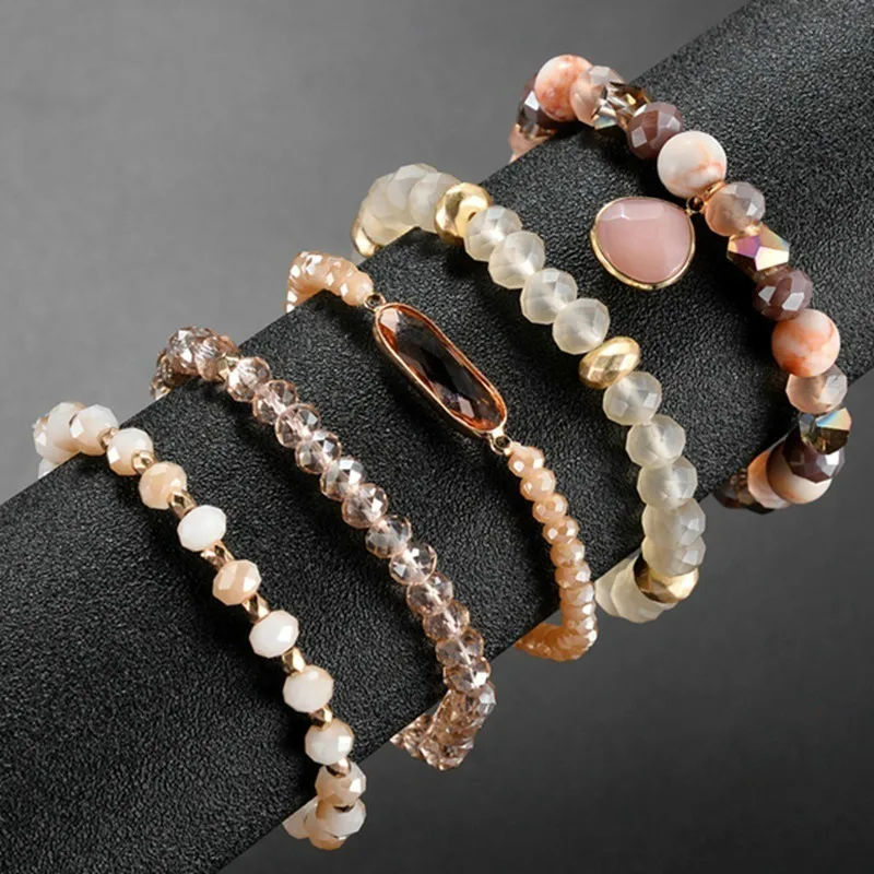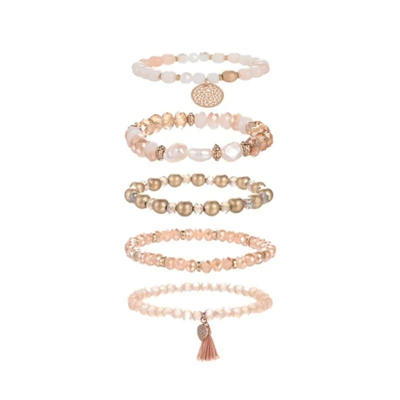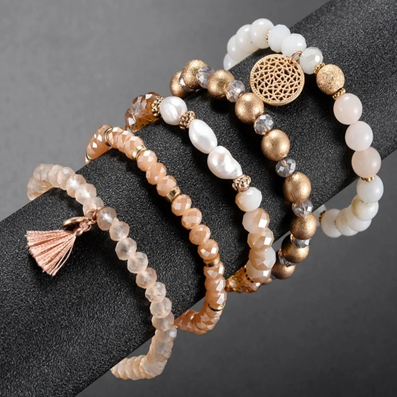 Модный набор из эластичного браслета с кристаллами и бусинами для женщин и девушек, популярный Ограненный стеклянный жемчужный браслет с бусинами и кисточками, ювелирные изделия ручной работы, подарок