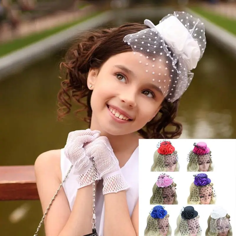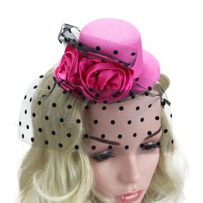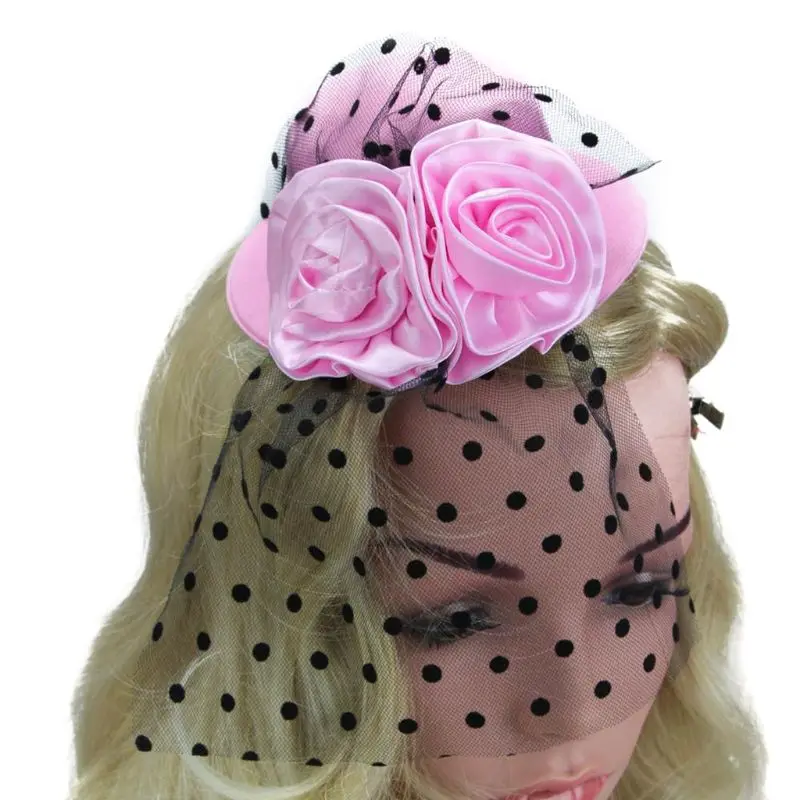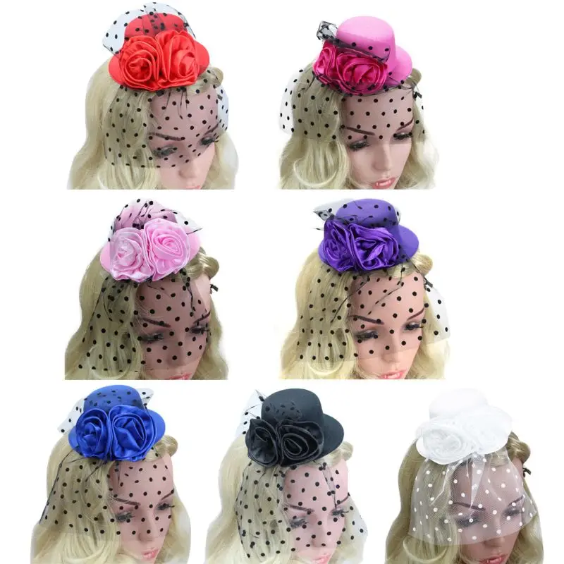 Шляпка-Вуалетка для женщин и девушек, Элегантные Заколки для волос в горошек, с цветочным принтом, сетчатая, с вуалью, для невесты, вечеринки, коктейля