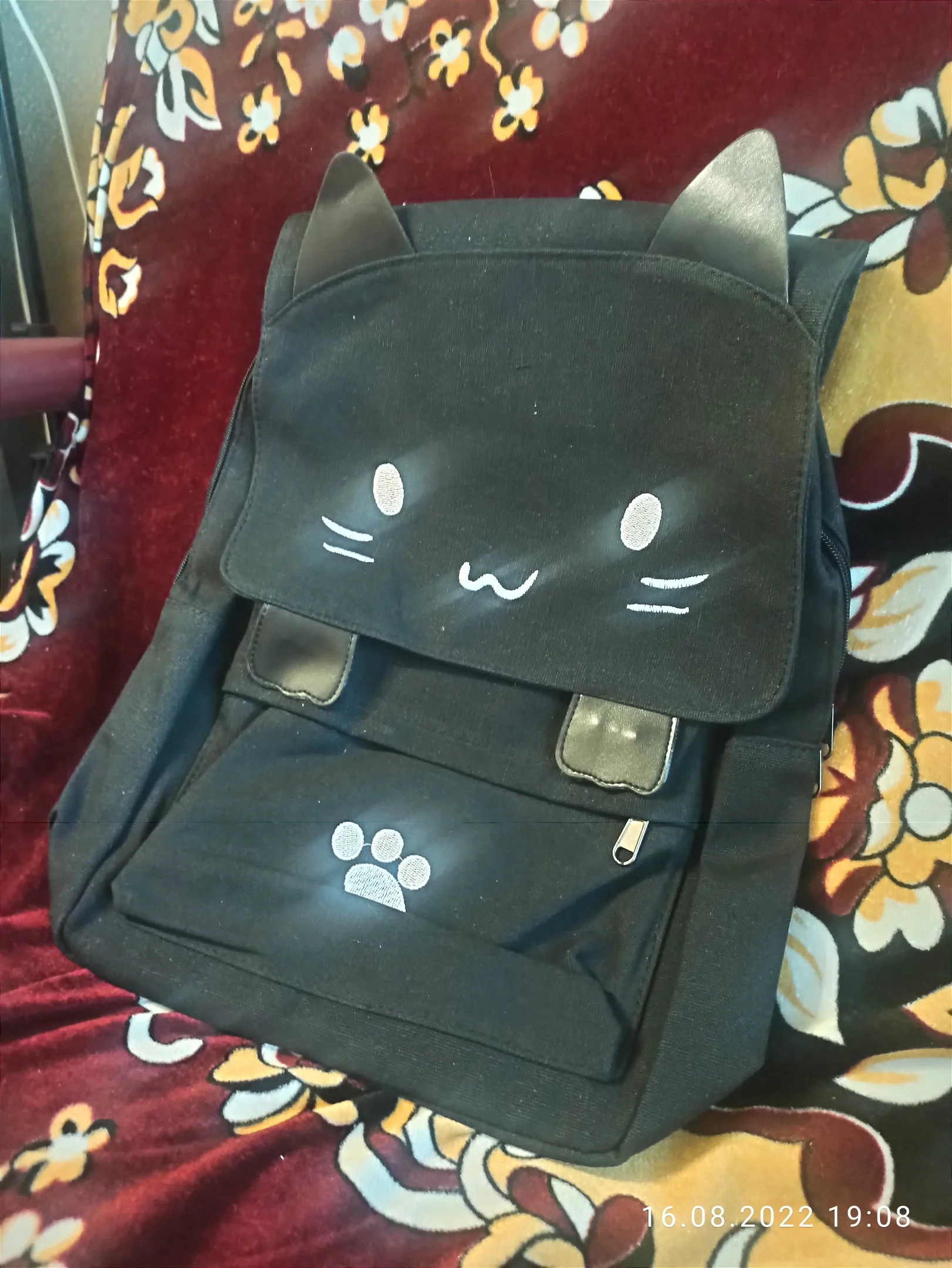 Милый рюкзак с вышивкой, с рисунком кота, с ушками, школьный рюкзак для девочек-подростков, Женский Повседневный Черный холщовый школьный рюкзак для подростков