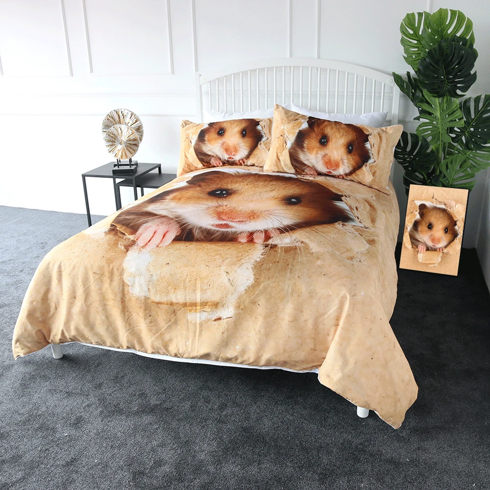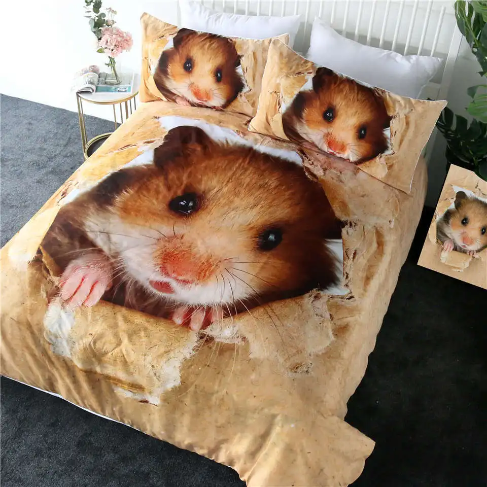 Постельные принадлежности для хомяка, набор постельного белья с принтом Papery, пододеяльник, 3D, яркие, коричневые, с мышкой, постельное белье, милый детский домашний текстиль, 3 шт.