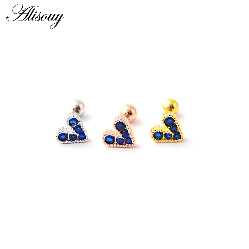 Alisouy женские стальные хрустальные драгоценные серьги шпильки для пирсинга ювелирные изделия Сердце Любовь Форма уха кости гвоздик для козелка серьги хрящевая спираль
