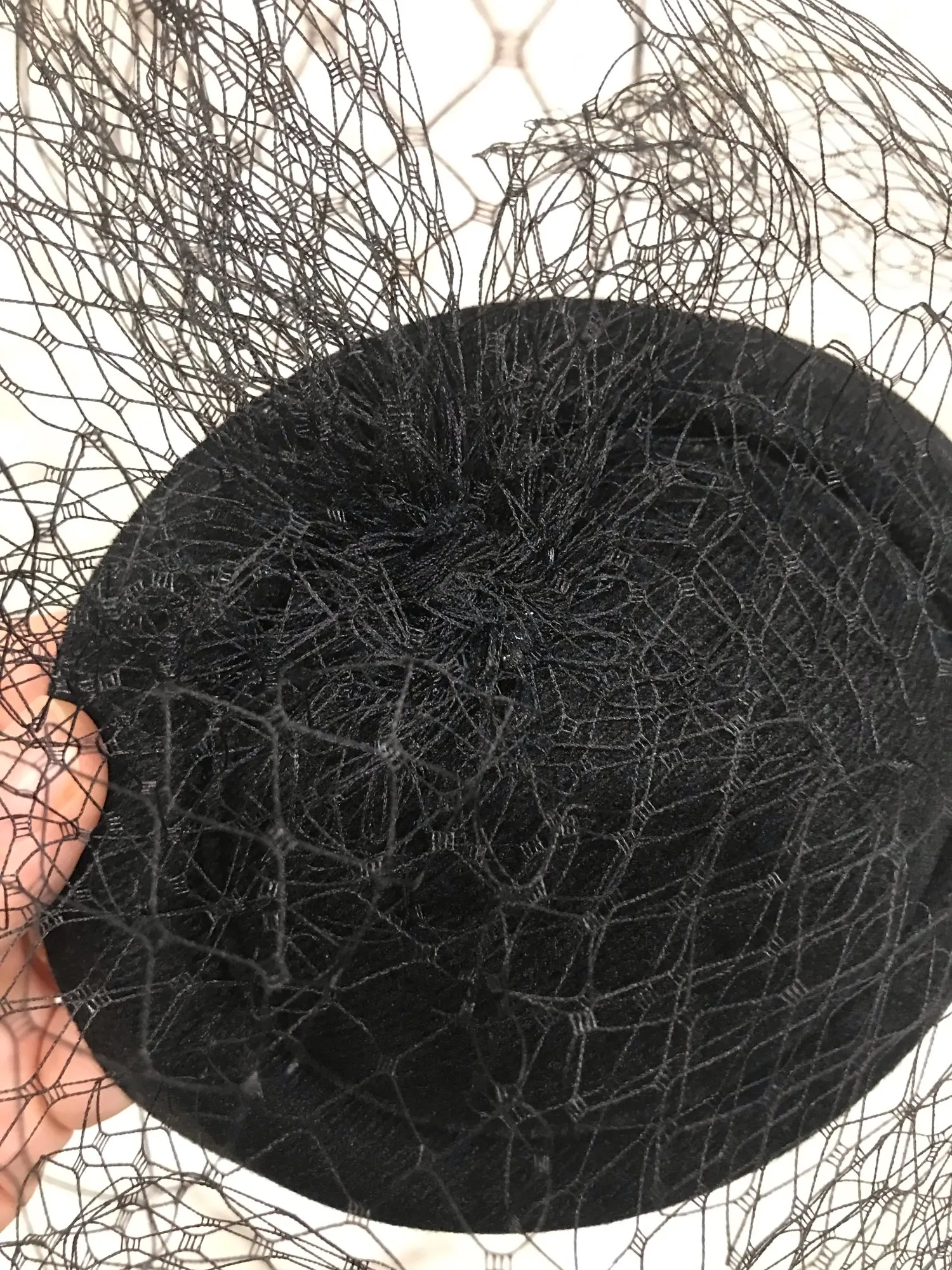Фетровая Вуалетка шляпа, сетчатая ажурная вуаль, небольшой плюшевый декор в точку волны, однотонный/контрастный цвет.