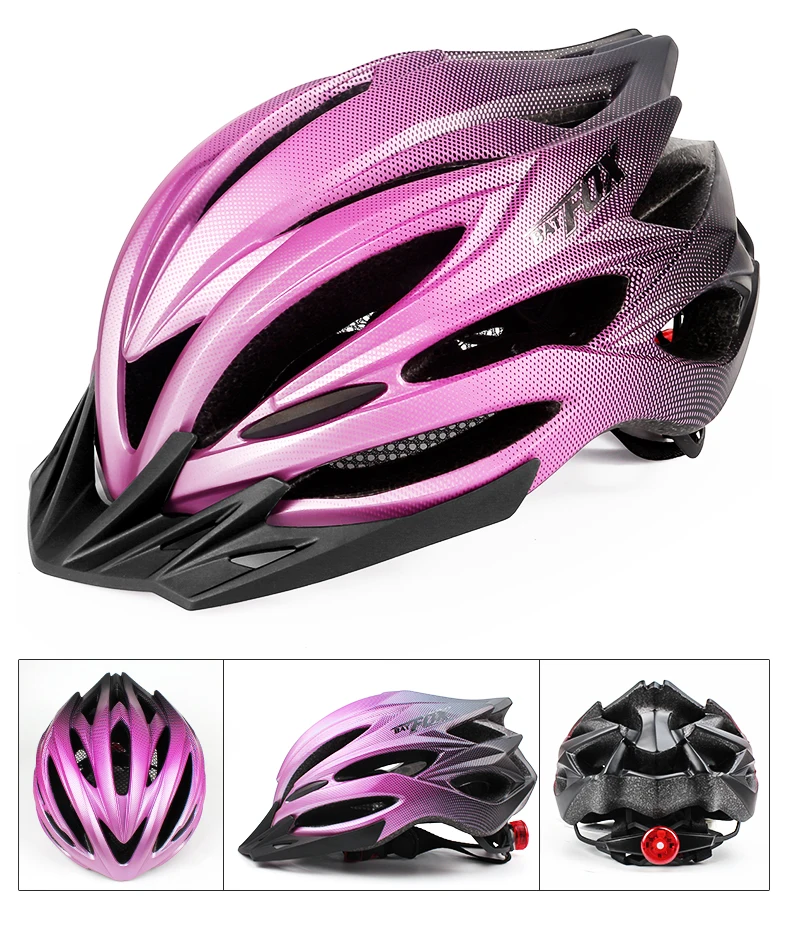 Спецификация:1. Название бренда: bat fox2. Название продукта: велосипедный шлем MTB3. Модель: 50024. Применение: Горный и шоссейный велосипеды5. Размер: M / L 56-62 см регулируемый6. Вес: около 355 г.7. Цвет: красный, белый, синий, зеленый, розовый, титановый8. Материал: Поликарбонат + EPS + регулируемые поля.9. Структура: внешний прочный корпус из поликарбоната, защищающий от ударов и внутренний пенополистирол. Может хорошо поглощать удар.10. Пол: взрослых мужчин и женщин.11. Прошел сертификацию CE EN1078.12. Товар прошел тест на безопасность.13. Особенности: ультралегкий шлем. Встроенный шлемОсобенности:Велосипедный шлем изготовлен из прочного чехла с мягкой подкладкой, которая может поглощать внешнее давление, вызванное крушением во время езды на велосипеде.Со съемной, защитной, впитывающей пот подкладкой, удобно носить и легко стирать.Конструкция вентиляционных отверстий эффективно снижает сопротивление воздуха и потоотделение.Поворотный внутренний регулятор регулирует плотность шлема.Шлемы поставляются с регулируемым ремешком, что делает их гибкими по размеру.
