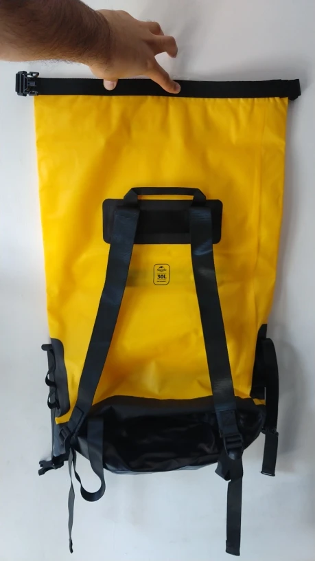 30 литров ... заполнил почти на 40 .... все зависит от количества закруток используют на SUP ...просто супер для походов на большие расстояния по суше - я думаю лямки слишком узкие не пропускает воду ... внутри все сухо я доволен