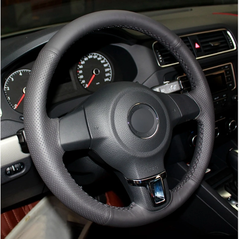 DIY ручной работы черного цвета из искусственной кожи чехол рулевого колеса автомобиля для Volkswagen Golf 6 Mk6 VW Polo MK5 2010 2011 2012 2013