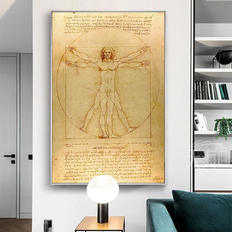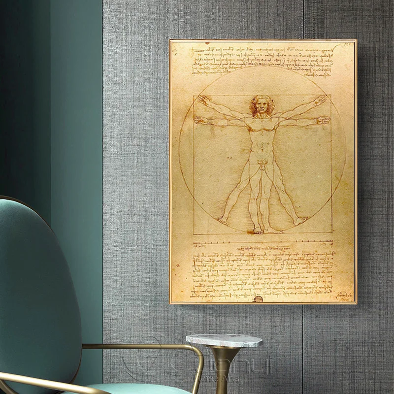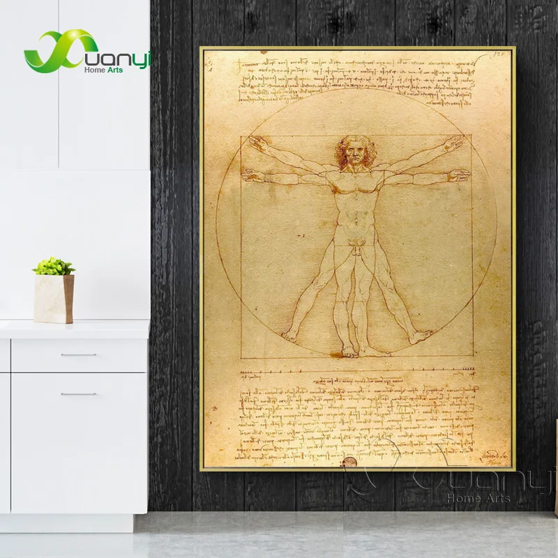 Классическая знаменитая живопись, винтажные постеры рукопись да Винчи, картина, путевианский человек, холст, принты, современное настенное искусство, домашний декор