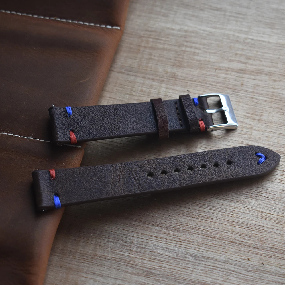 Onthelevel 18 мм 20 мм 22 мм винтажный кожаный ремешок для часов ручной работы Ретро ремешок для часов со строчкой красная синяя линия # D