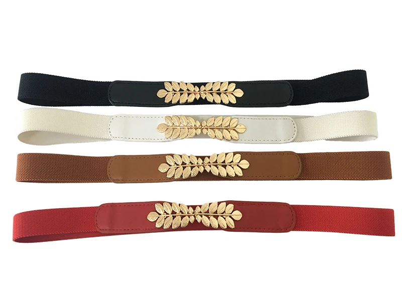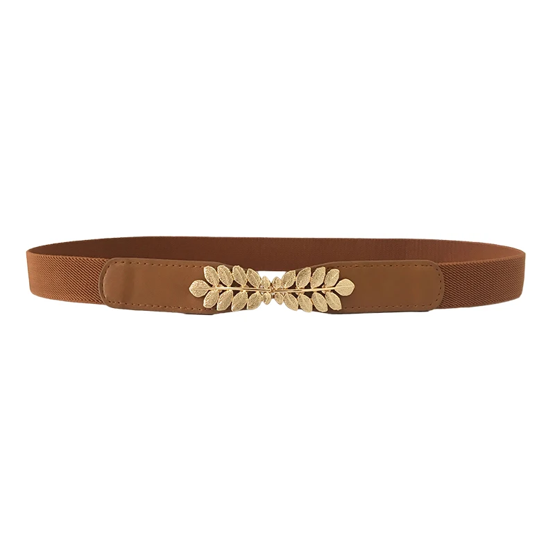 Ремень женский эластичный из ткани, с металлической пряжкой и золотыми листьями
