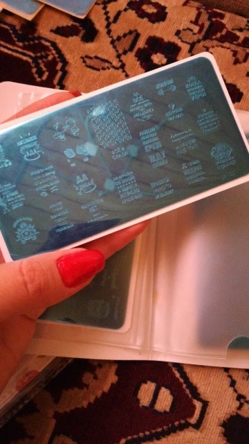 Пластинка хорошая, но я ожидала, что будет побольше размером) Рисунок четкий, без царапин, лак отдаёт хорошо. Довольна заказом. А ещё довольна быстрой доставкой. Заказала 28.11, получила 17.12. Хотя изначально не предполагала, что к новому году успеет!
