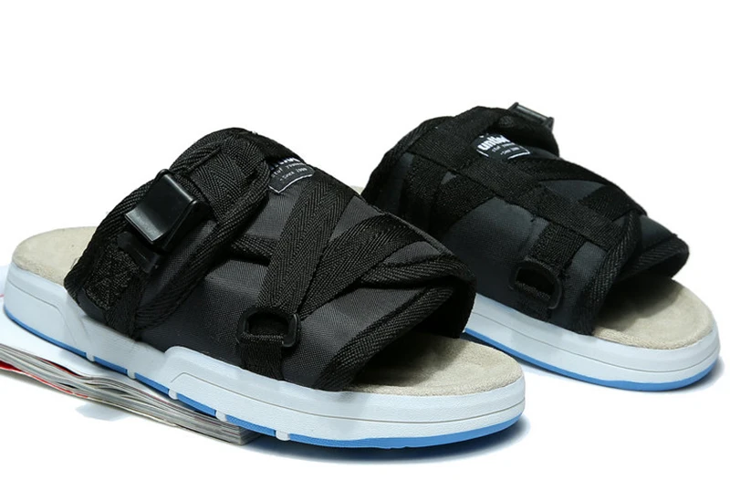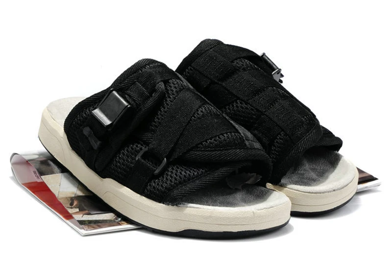 Размера плюс обувь на плоской подошве от известного бренда дизайнерские черные босоножки без задника 45 шлепанцы без задника с открытыми пальцами сетчатые пляжные мужские сандалии 2021 летняя Уличная обувь повседневная обувь без застежки