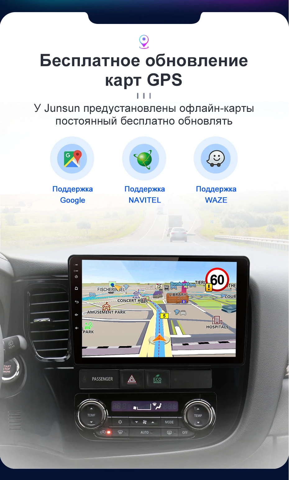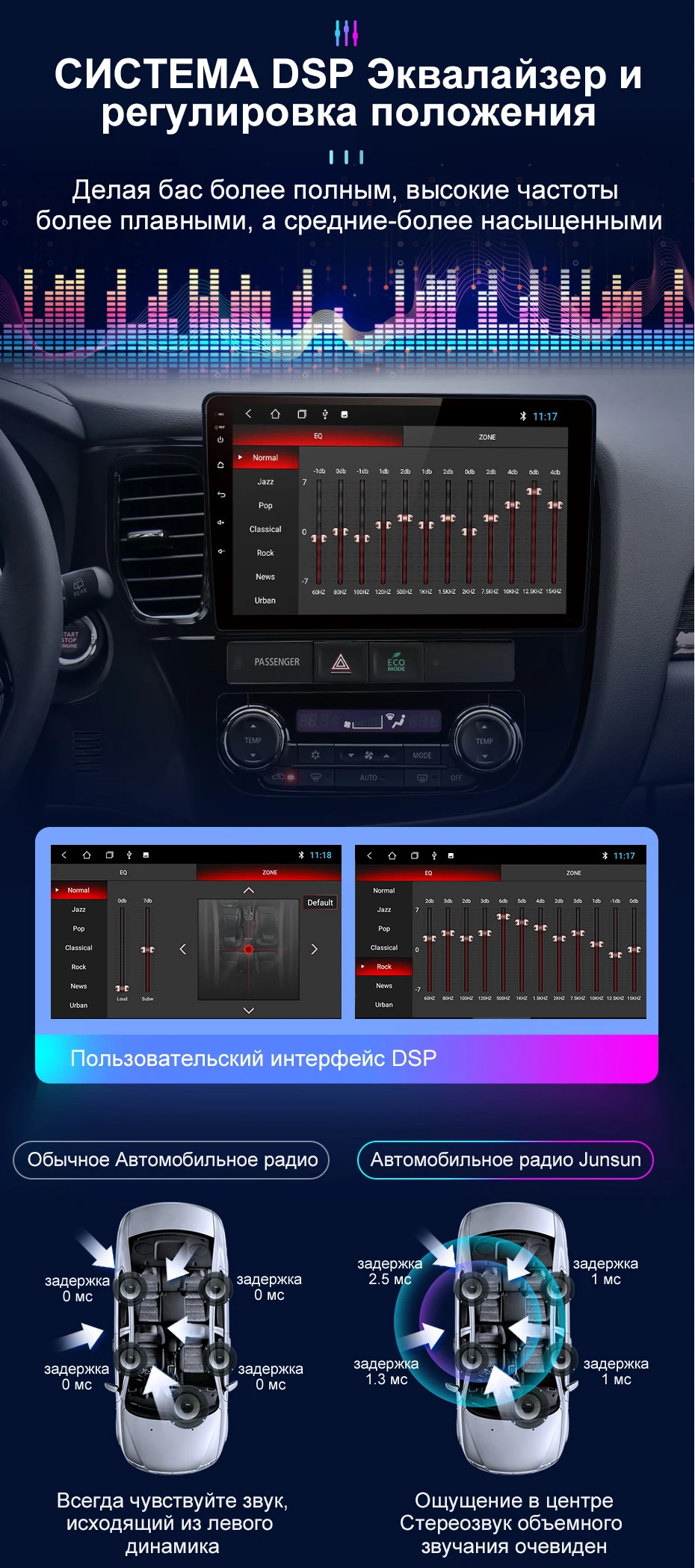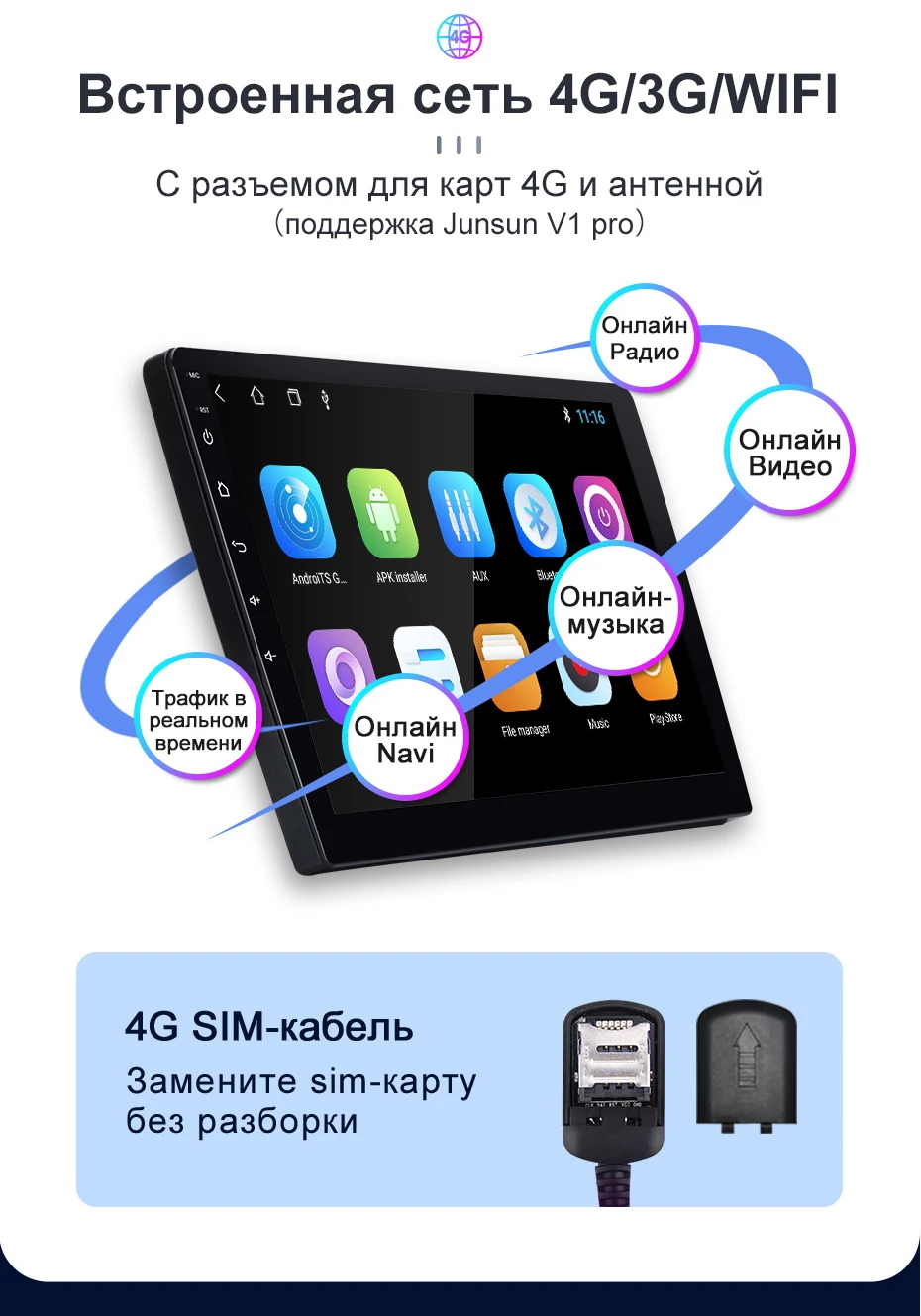 Недавно выпущенная версия Junsun UI 3.0 будет работать более удобно. Этот новый UI удовлетворит повседневные потребности большинства людей в вождении. Сделав интерьер вашего автомобиля красивееПожалуйста, обратитесь внимание:- Если магнитола отправлен из Китая - версию junsun UI 3.0. Но магнитола отправлен из России -версию Junsun UI 2.0 . Если вам нужно обновить версию Junsun UI 3.0 после покупки, свяжитесь с нами, чтобы обновить прошивку.
