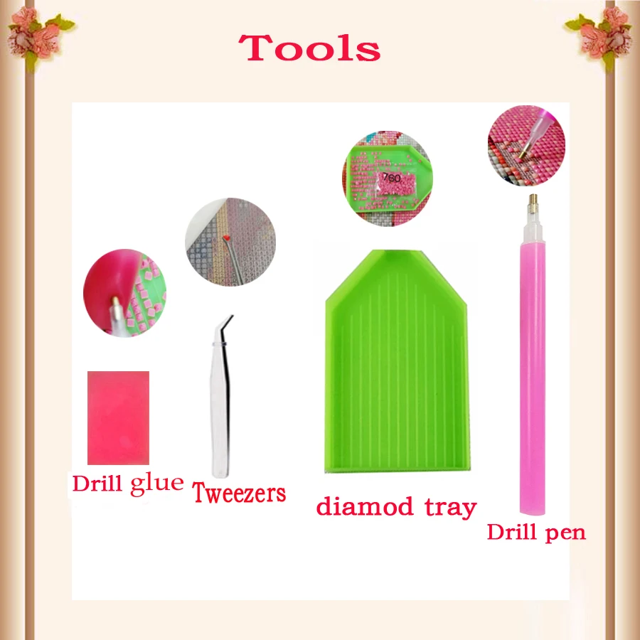 Посылка:Полный алмаз сверла, ткань с принтом, инструменты