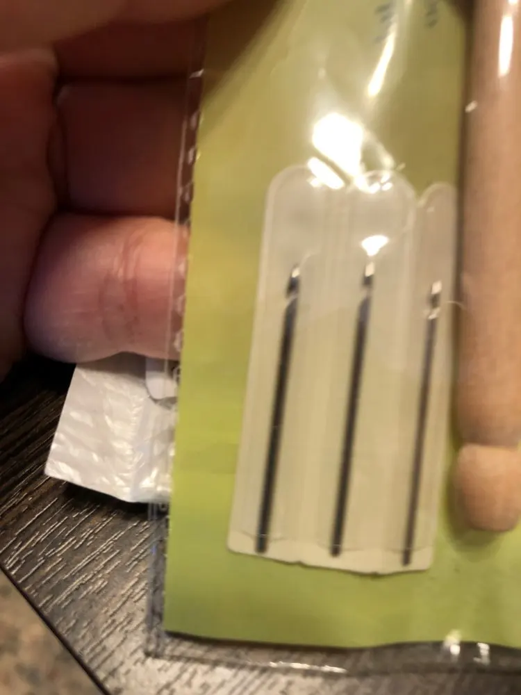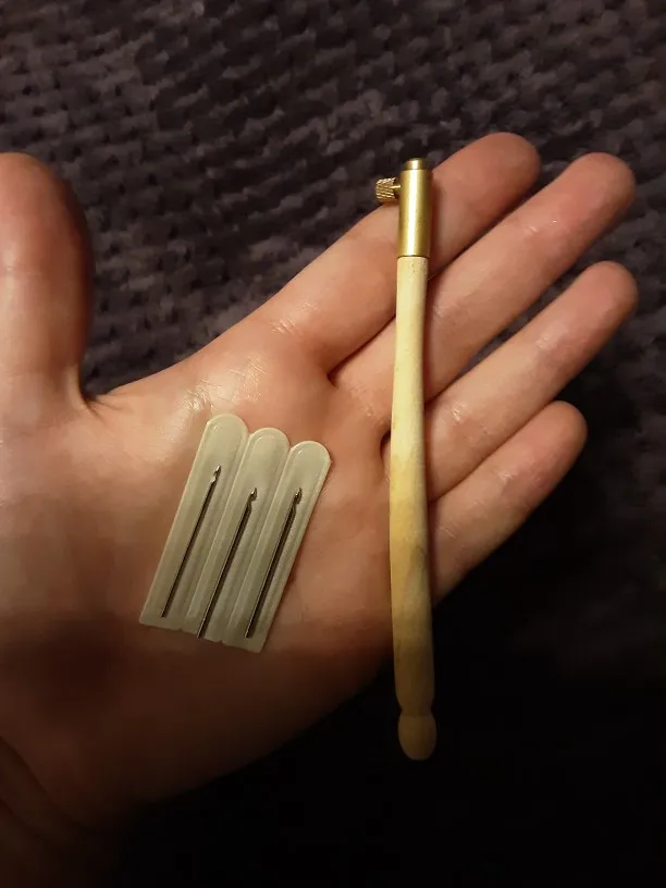 Пришло в целости, с комплектом в 3 иглы. Стержень довольно тонкий, как у карандаша, буду пробовать.