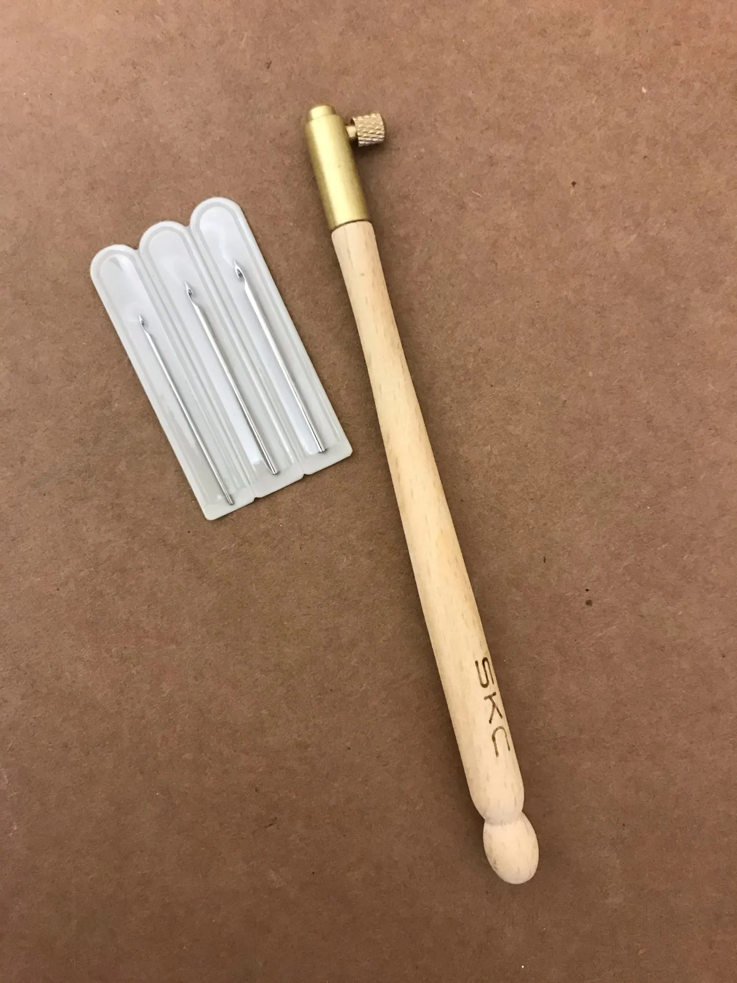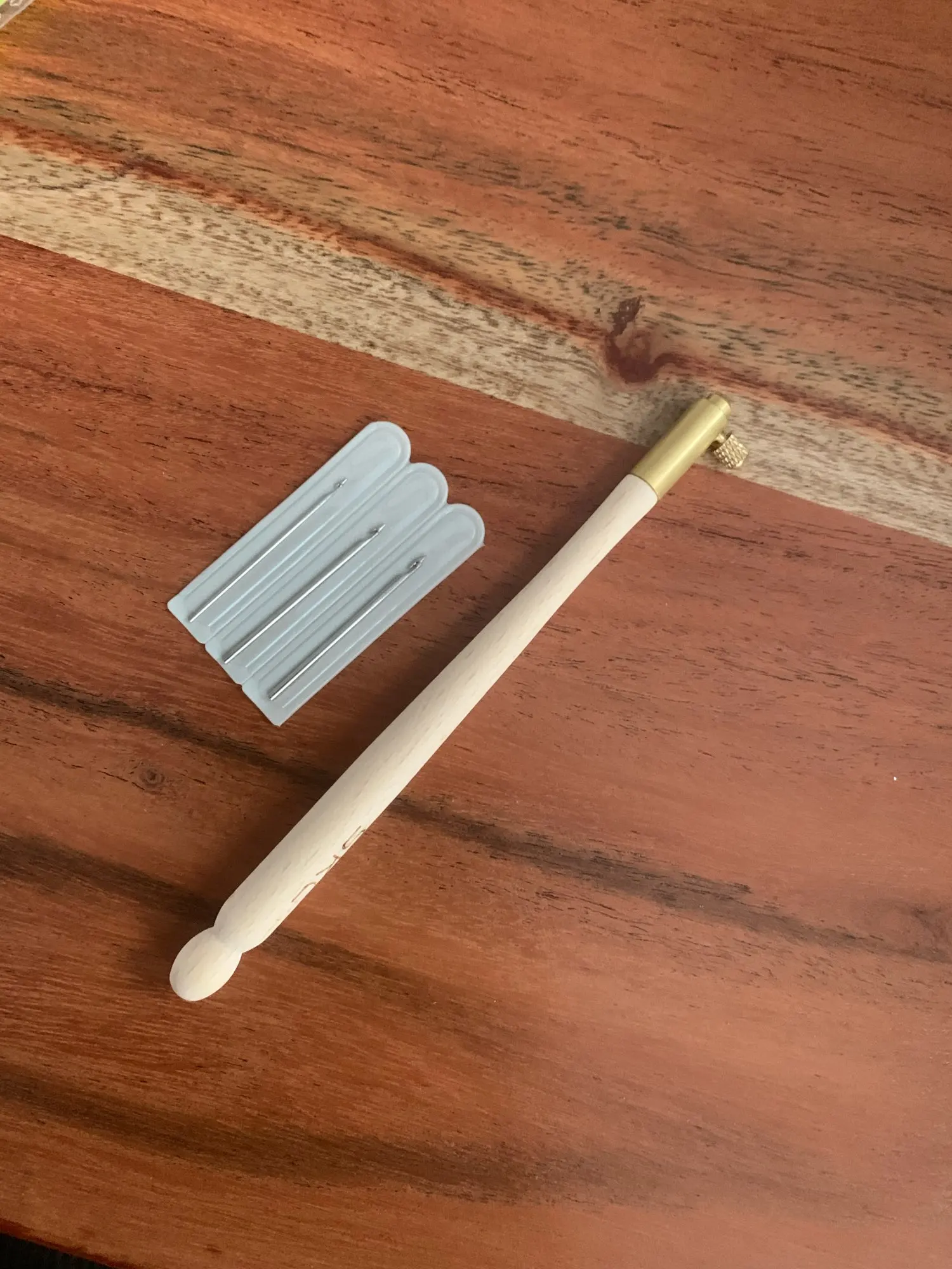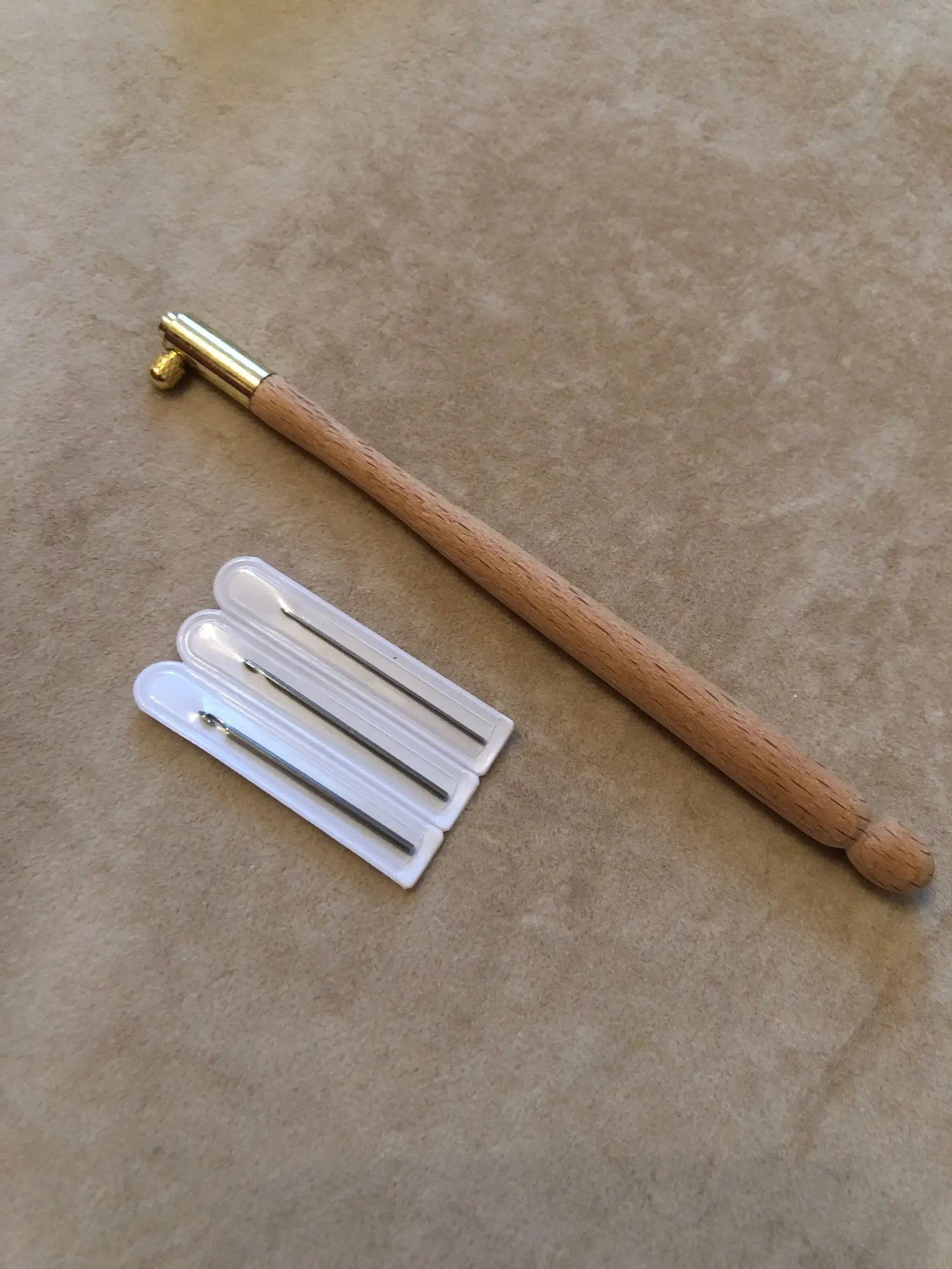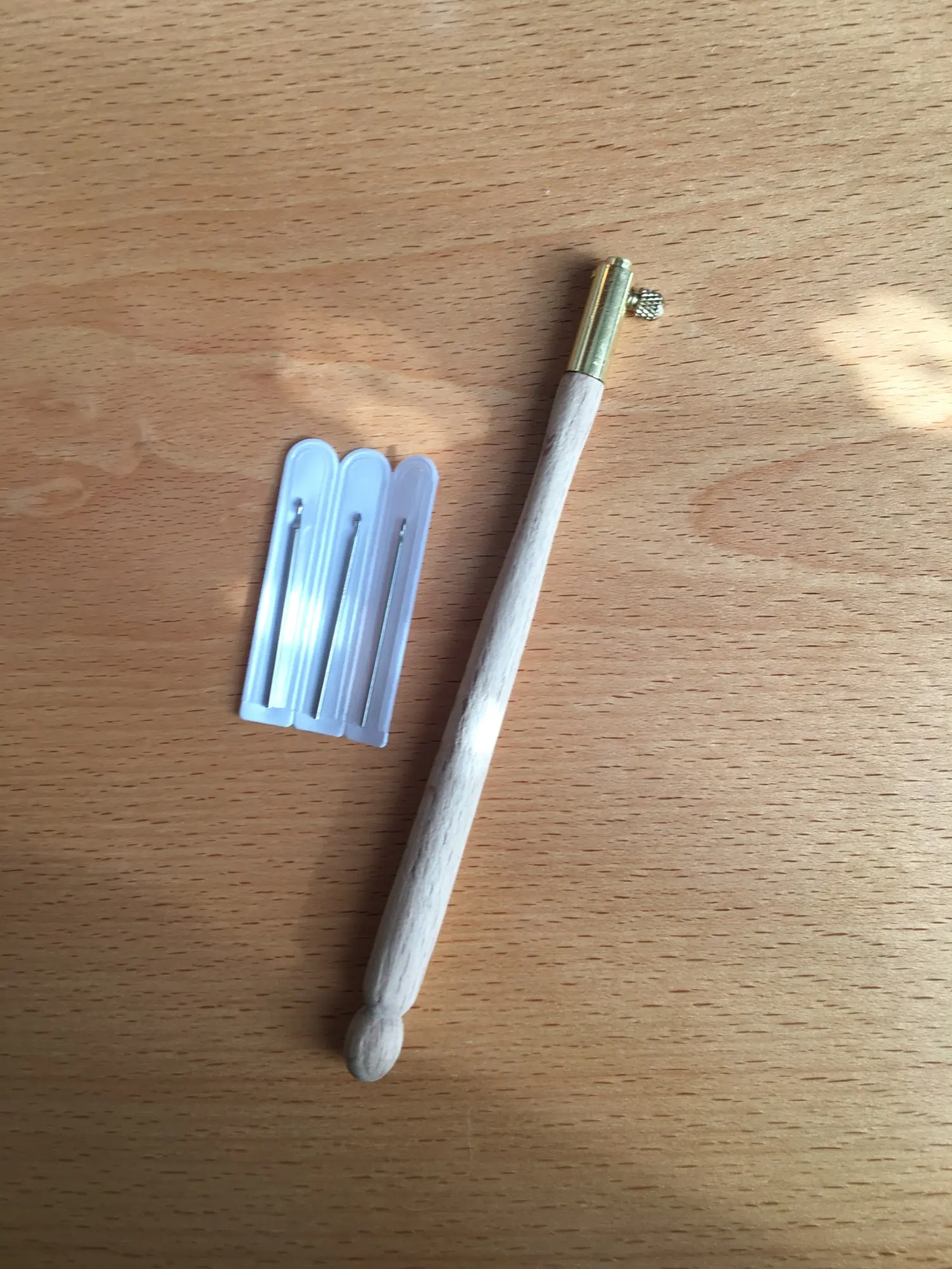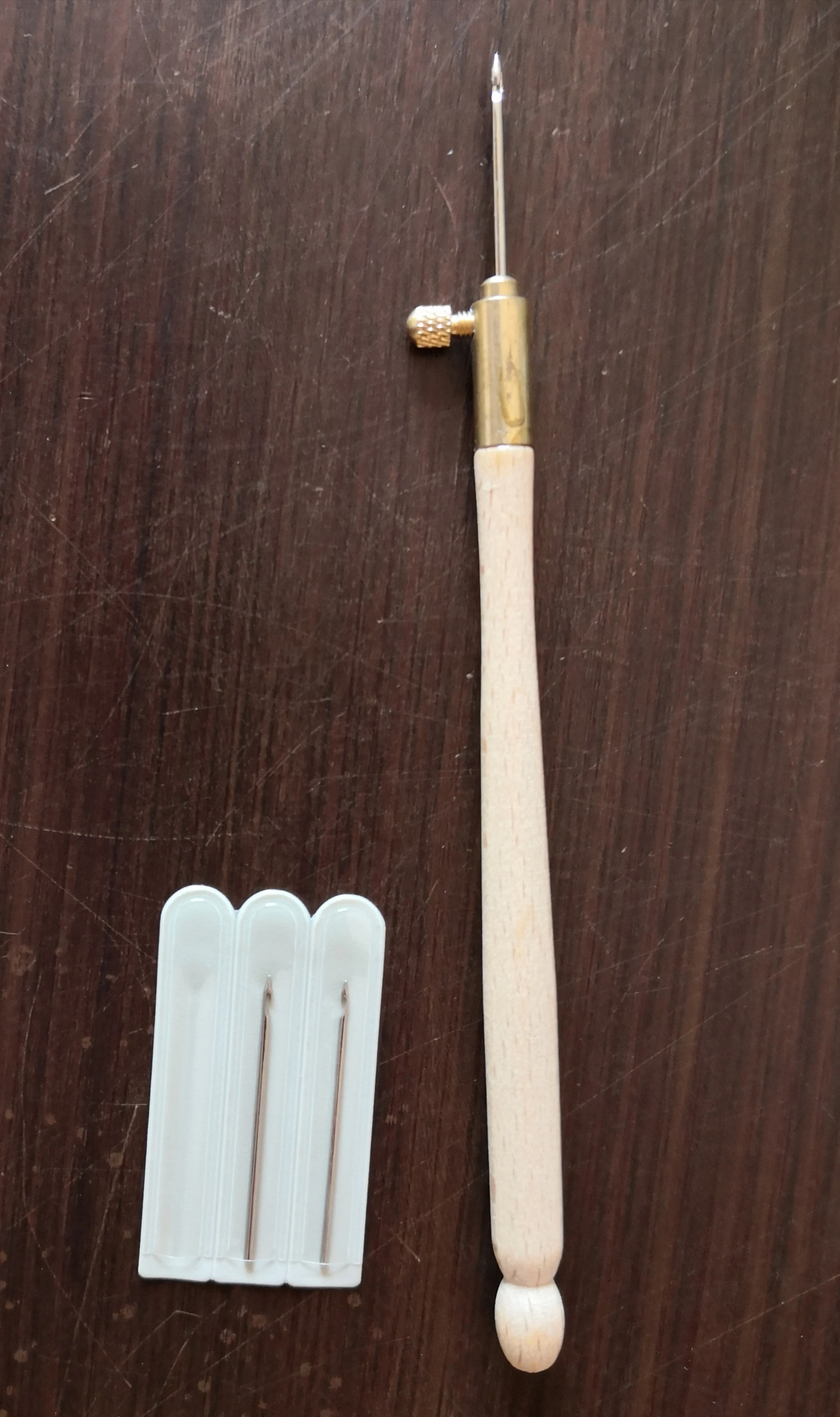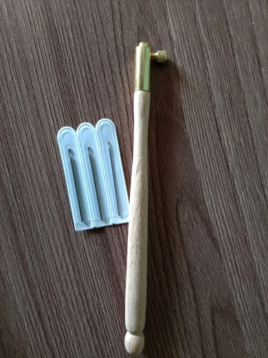 Ручка чистое дерево, без лака, иголки острые, три штуки в чехлах, думала что будут тоньше