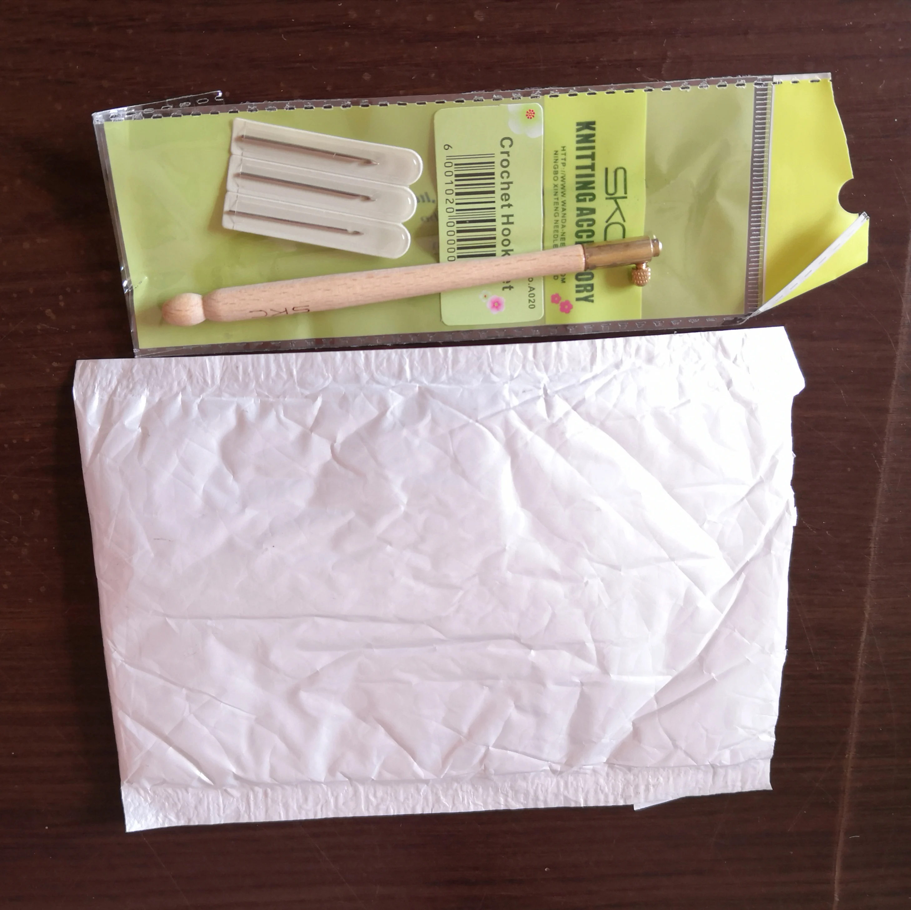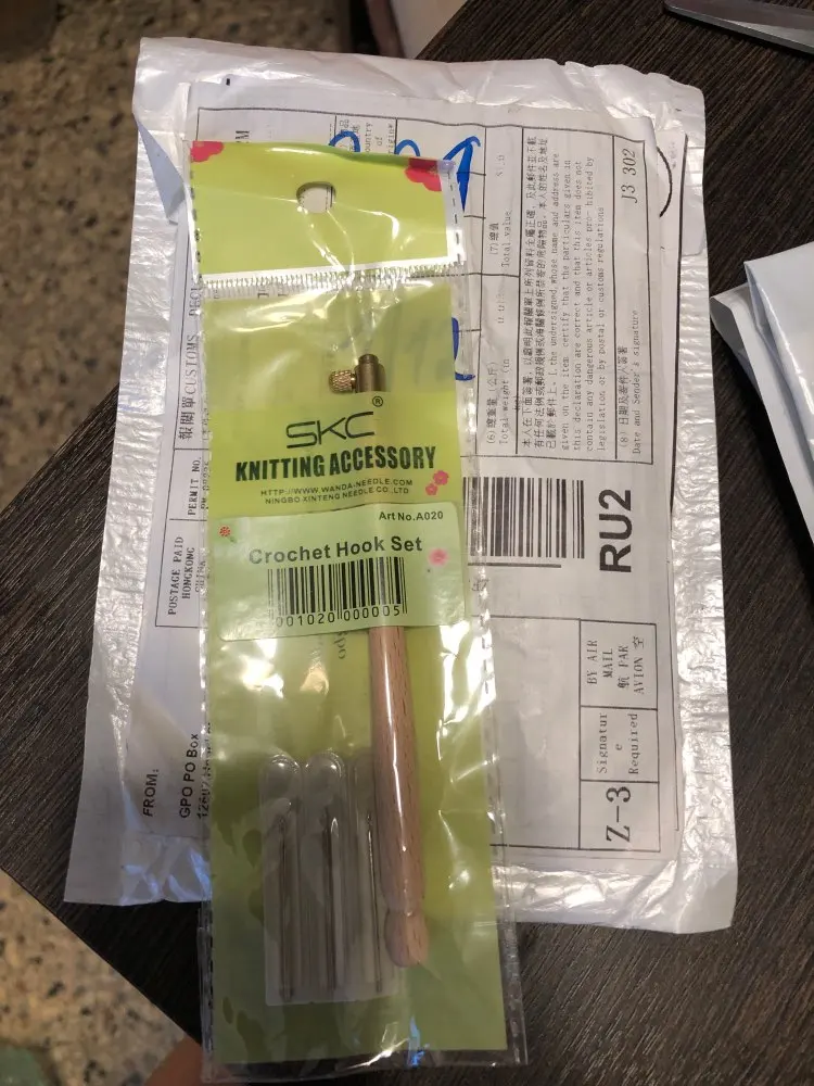 крючок и три иголочки добрались до Воронежа за три недели . На таможне все мои мелкие заказы об'единили в одну посылку , что очень удобно - ничего не потерялось. Крючочек хорошенький , ручка гладкая , винт хорошо фиксирует иглу-крючок . Продавца рекомендую .