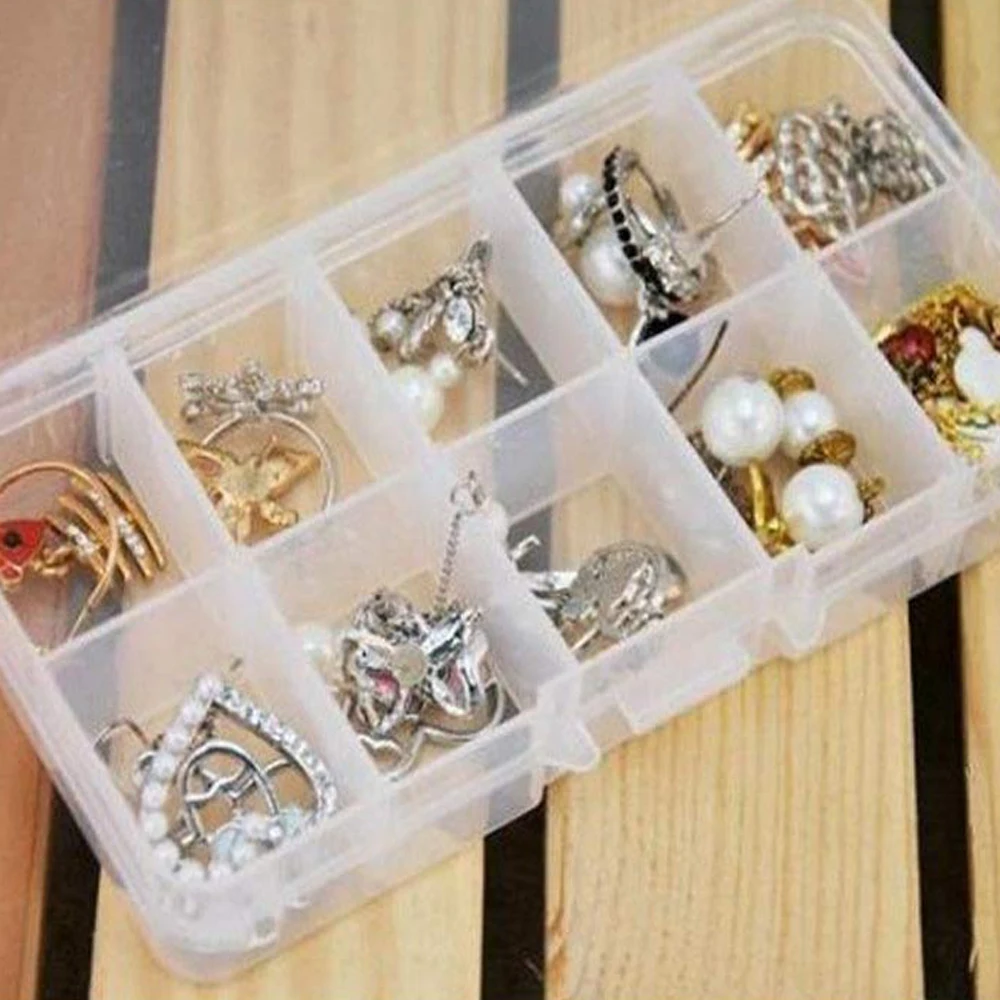 Органайзер для ювелирных изделий SZanbana, прозрачный пластиковый держатель для ювелирных изделий с подвижным разделителем, контейнер для хранения сережек, 15 ячеек