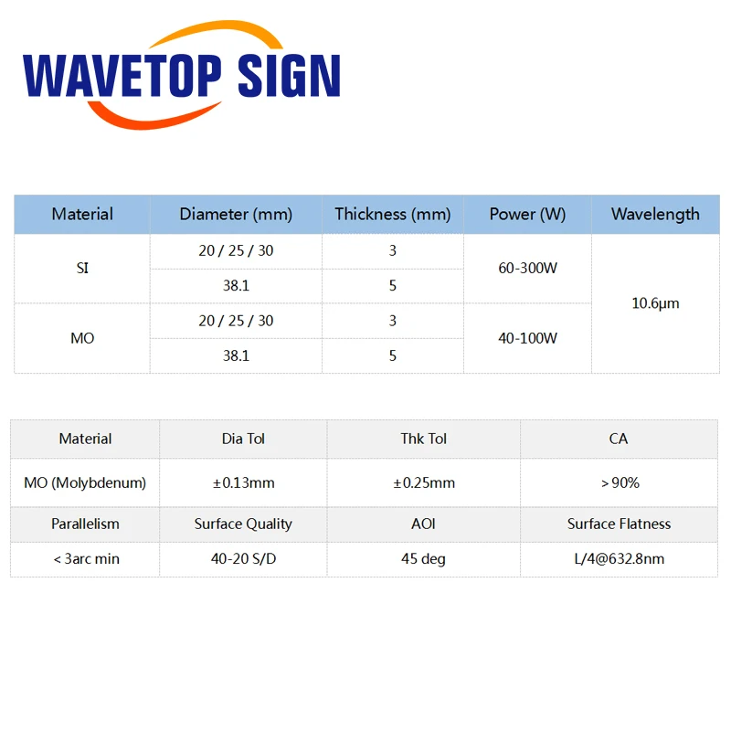Фокусная линза WaveTopSign диаметром 1218 мм фокусное расстояние 50,8 мм 1 шт. + зеркало MO 20x3 мм 3 шт. для лазерного гравировального станка 3020 K40 Co2
