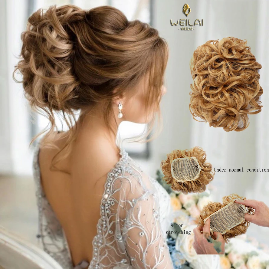 Синтетический короткий кудрявый шиньон WEILAI, эластичная резинка, два пластиковых зажима для наращивания волос, пучок для волос для женщин