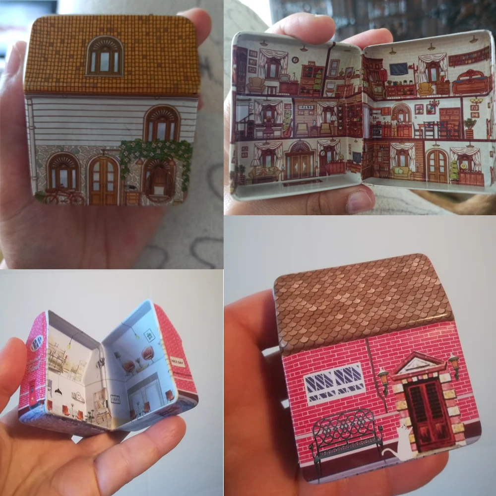 Металлическая мини-коробка в форме домика, пустая жестяная коробка для хранения, жестяная жесть, домашний контейнер для свадебных конфет, маленький контейнер для хранения, коттедж, подарок для детей