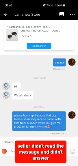 продавець відправив не у те місто, замість Луцька відправив в Харківську область. там товар хтось отримав, а заплатив за нього я. На щастя вдалося довести свою правоту і виграти спір, повертають всю суму. продавець ігнорує мої повідомлення.