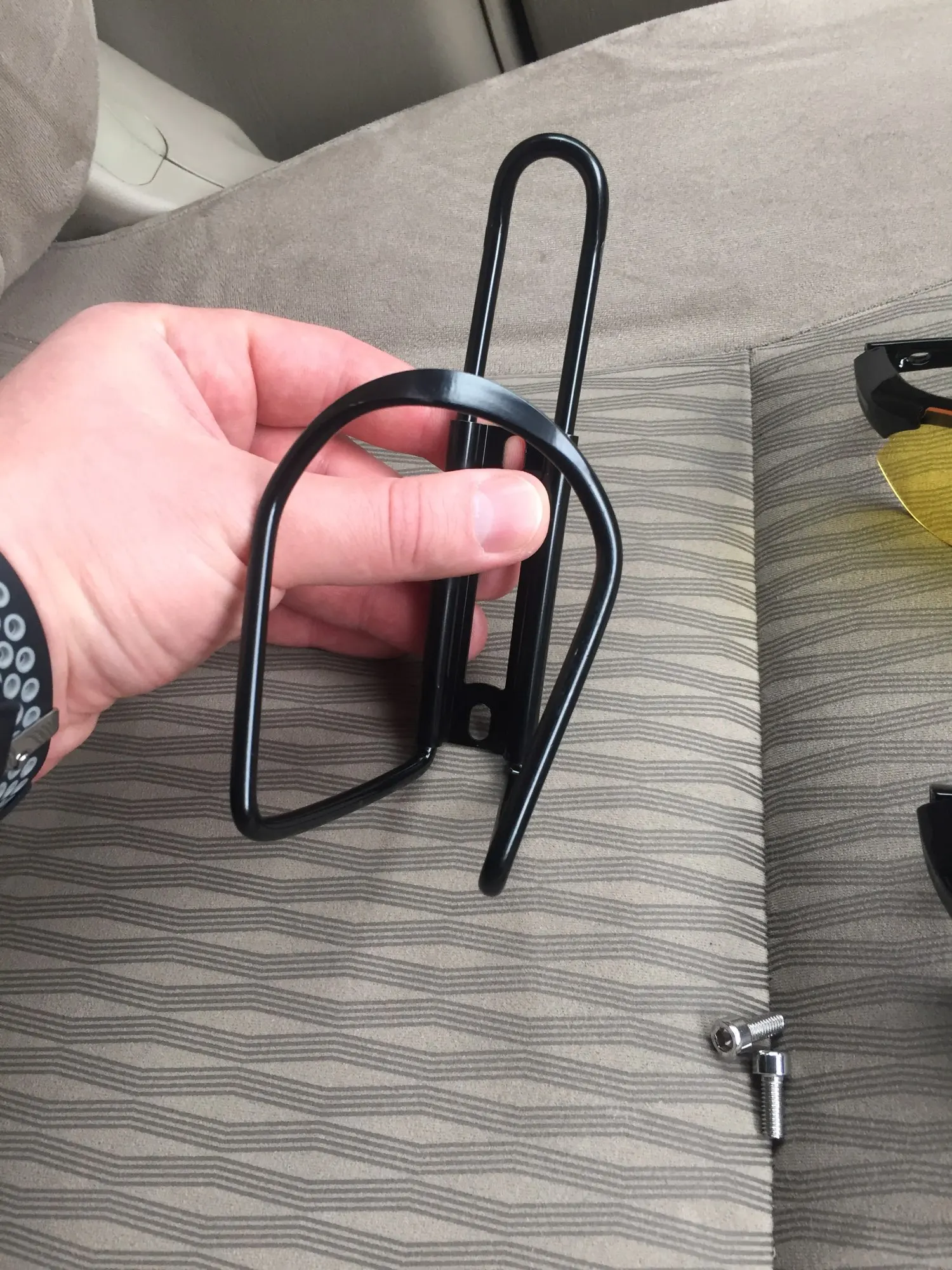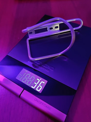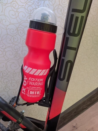 Прибыл относительно быстро. Очень лёгкий алюминий. Легко вмещается пол литровая бутылка, чтобы поместить литровую, придется руками раздвигать. Сейчас зимой пользоваться ни великом, ни держателем не будем. поэтому трудно дать оценку. Смотрится красиво.