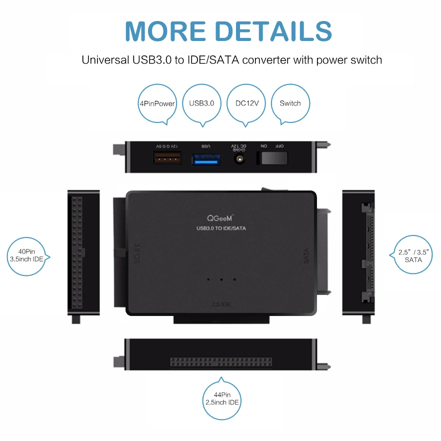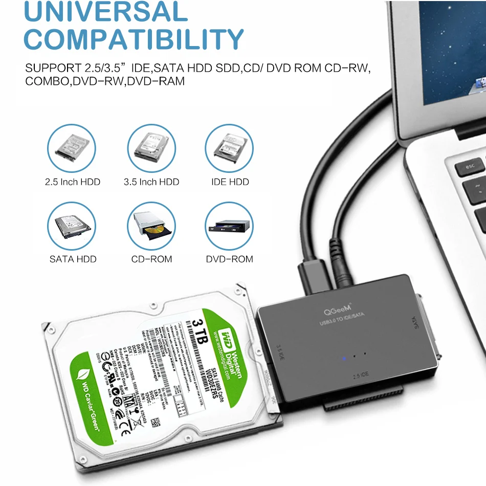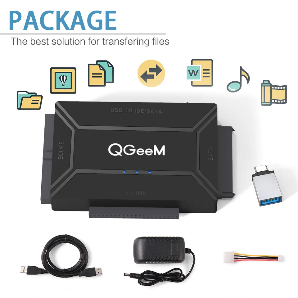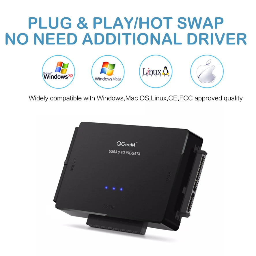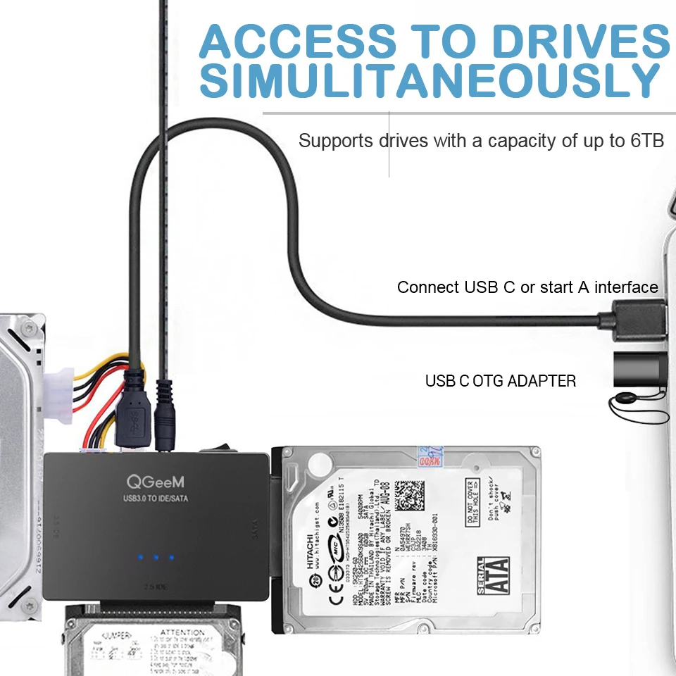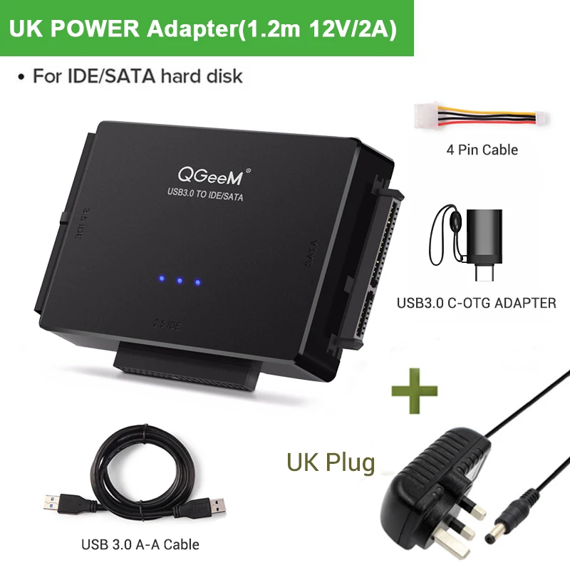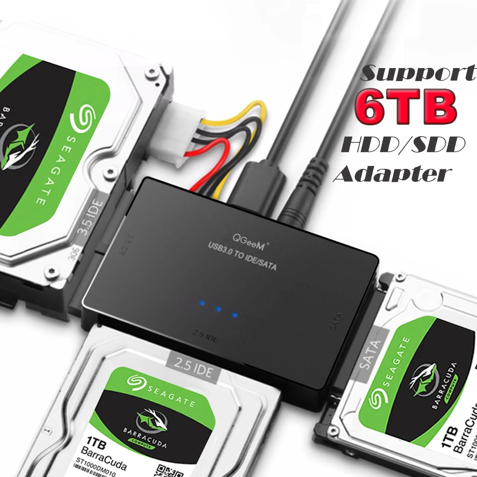 Переходник QGeeM SATAUSB 3,0 IDE, кабель USB 2,5 Sata для жестких дисков 3,5 SATA IDE, Переходник USB C OTG HDD SSD USB конвертер