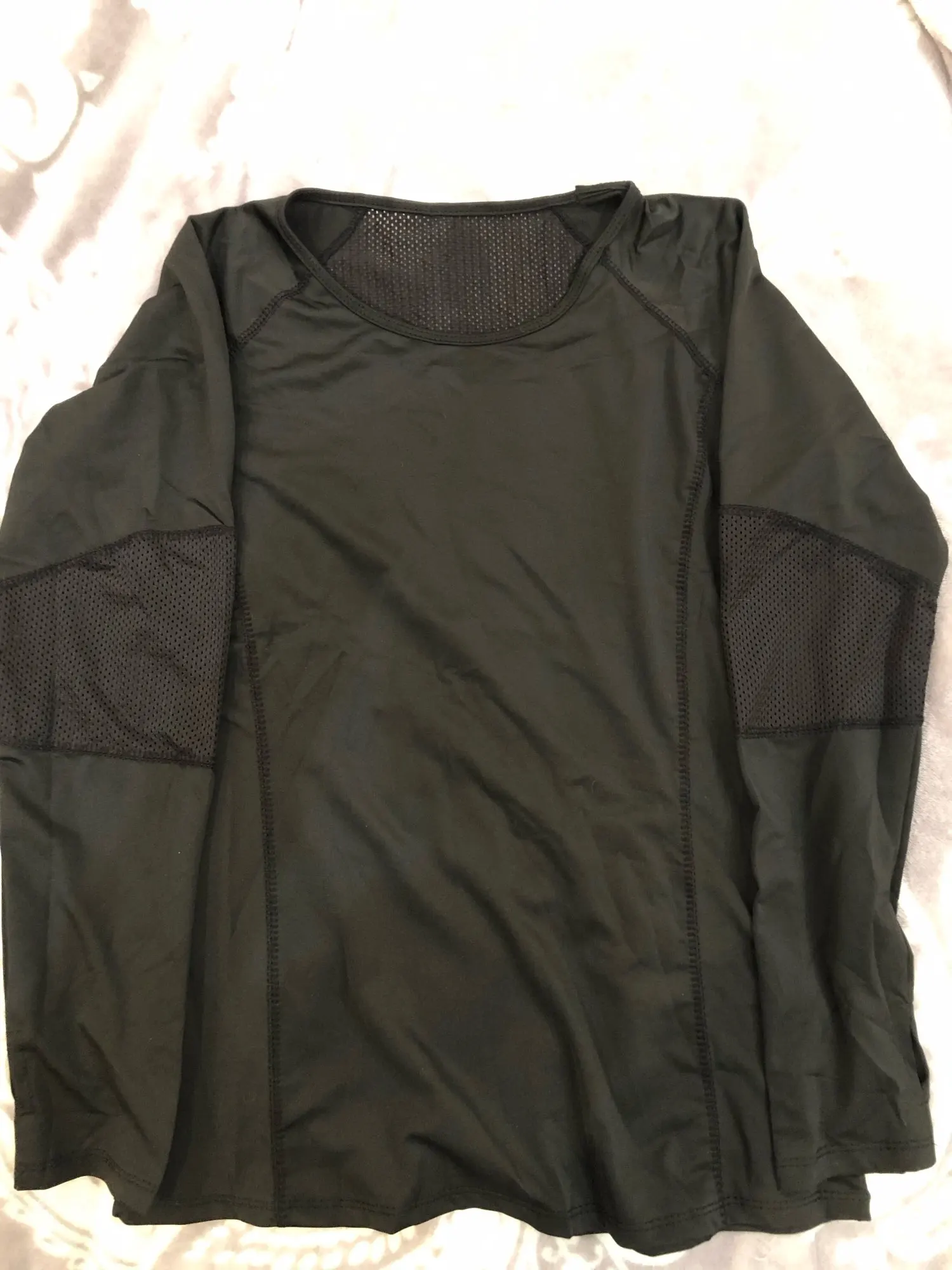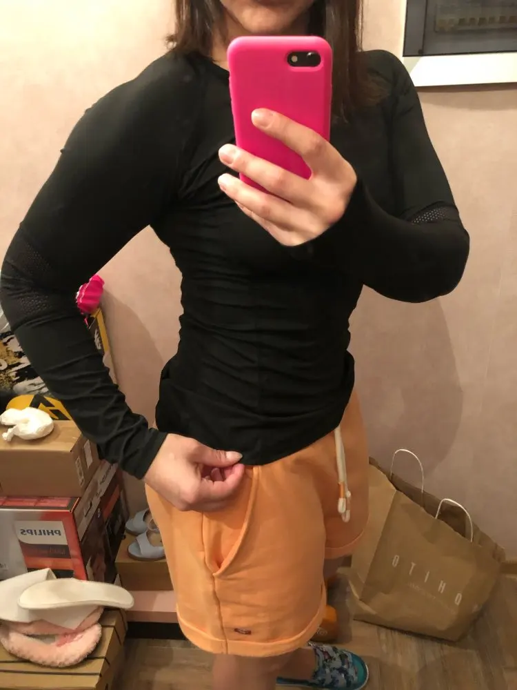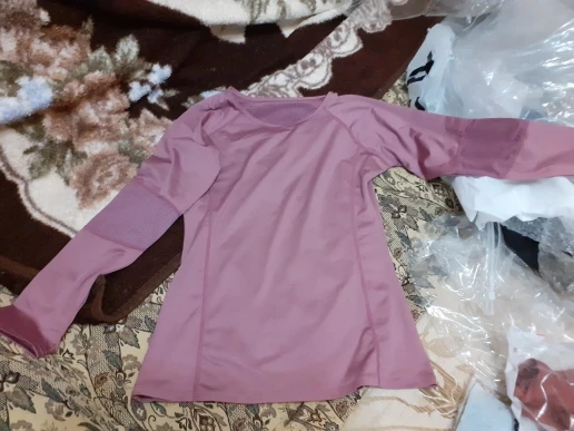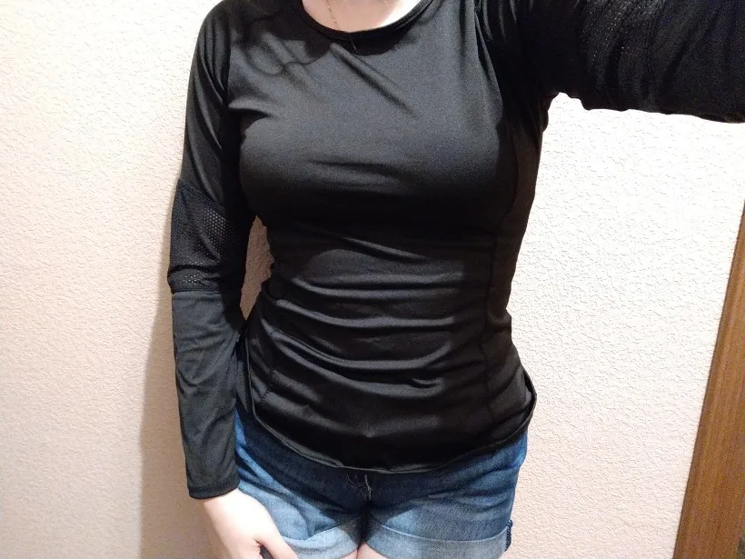 Товар хороший за 587 рублей! Правда, рукава на кисть руки не натягиваются, так как короткие, хотя прорези для бооьшого пальца есть. Размер скорее маломерит. Я получила размер М на грудь 88 в самый раз. Заниматься в ней было удобно. Дошёл товар Мега быстро! Спасибо продавцу! Буду заказывать еще одну в другом цвете.