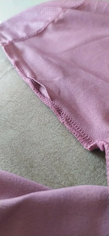 Ткань пахнет много химикатов, она не плохо пахнет, но разрез декольте несколько непропорциональен. Он пришел с несколькими нитями, висящими. По цене, это более или менее ожидаемо.