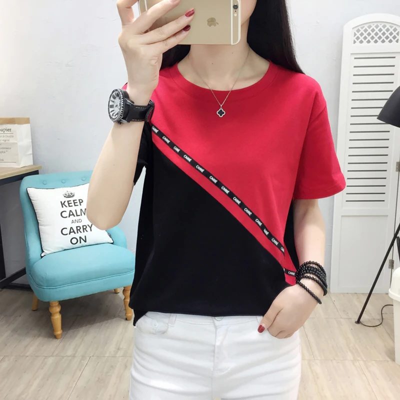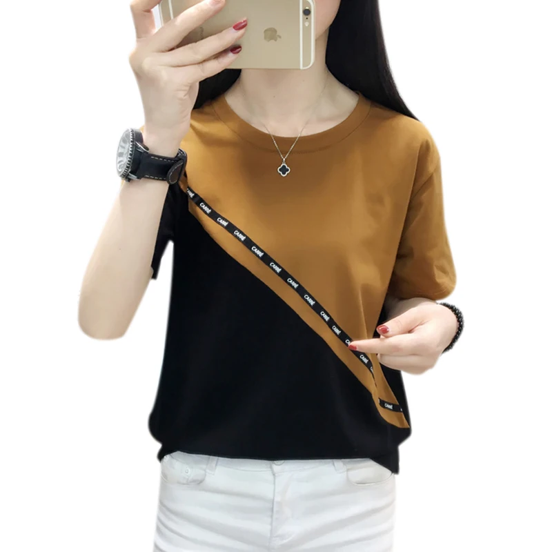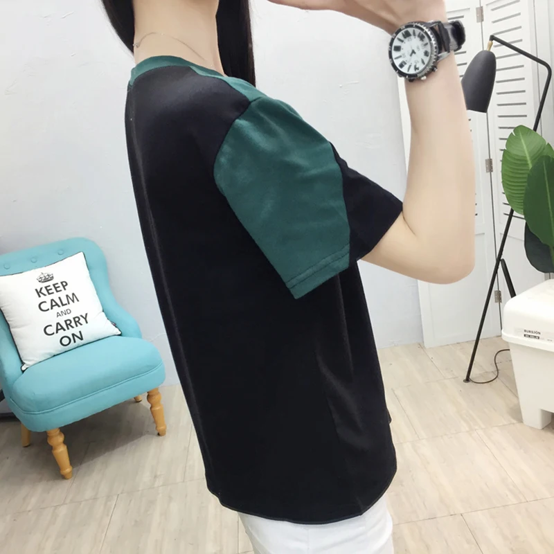 Черная зеленая Лоскутная 2022 Летняя Повседневная футболка с коротким рукавом женская футболка Camiseta Feminina Корейская свободная футболка Femme