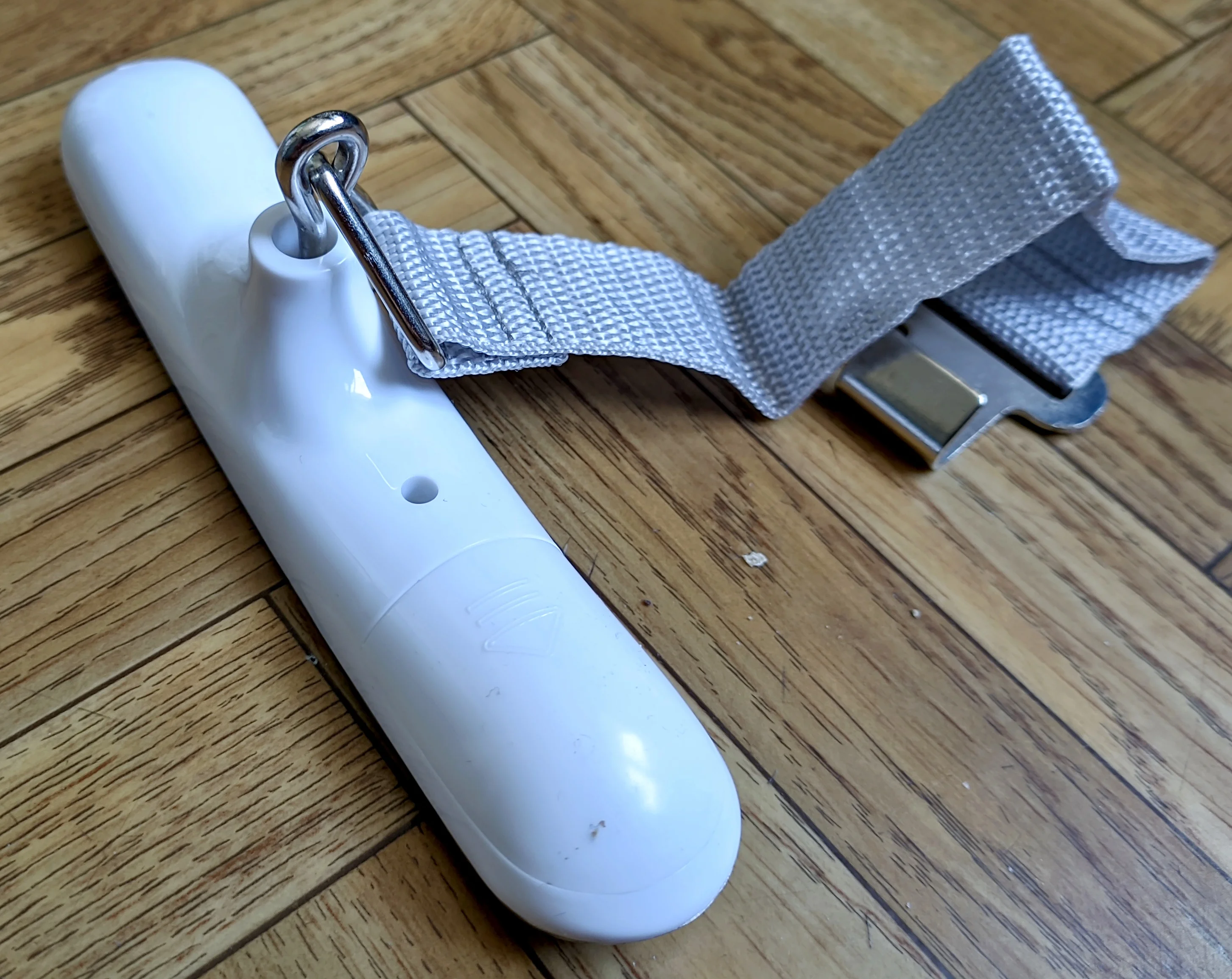 Сделан аккуратно, выглядит прилично. Но очень здоровый! Я думал раза в 2 поменьше будет. 15 см в длину, туда АА батарейка спокойно влезла бы. Весит 86 грамм. С собой брать по мне великоват. Точность такая же как у моего старого безмена, норм. Для чемоданов сойдёт.