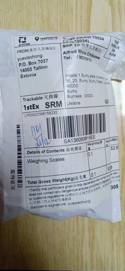 Почему-то очень долго шли до СПб. После пересечения границы трек код совсем не отслеживался. Вопрос, естно, к нашей почте, какого лешего посылка с весами по России шла 2,5 месяца.
