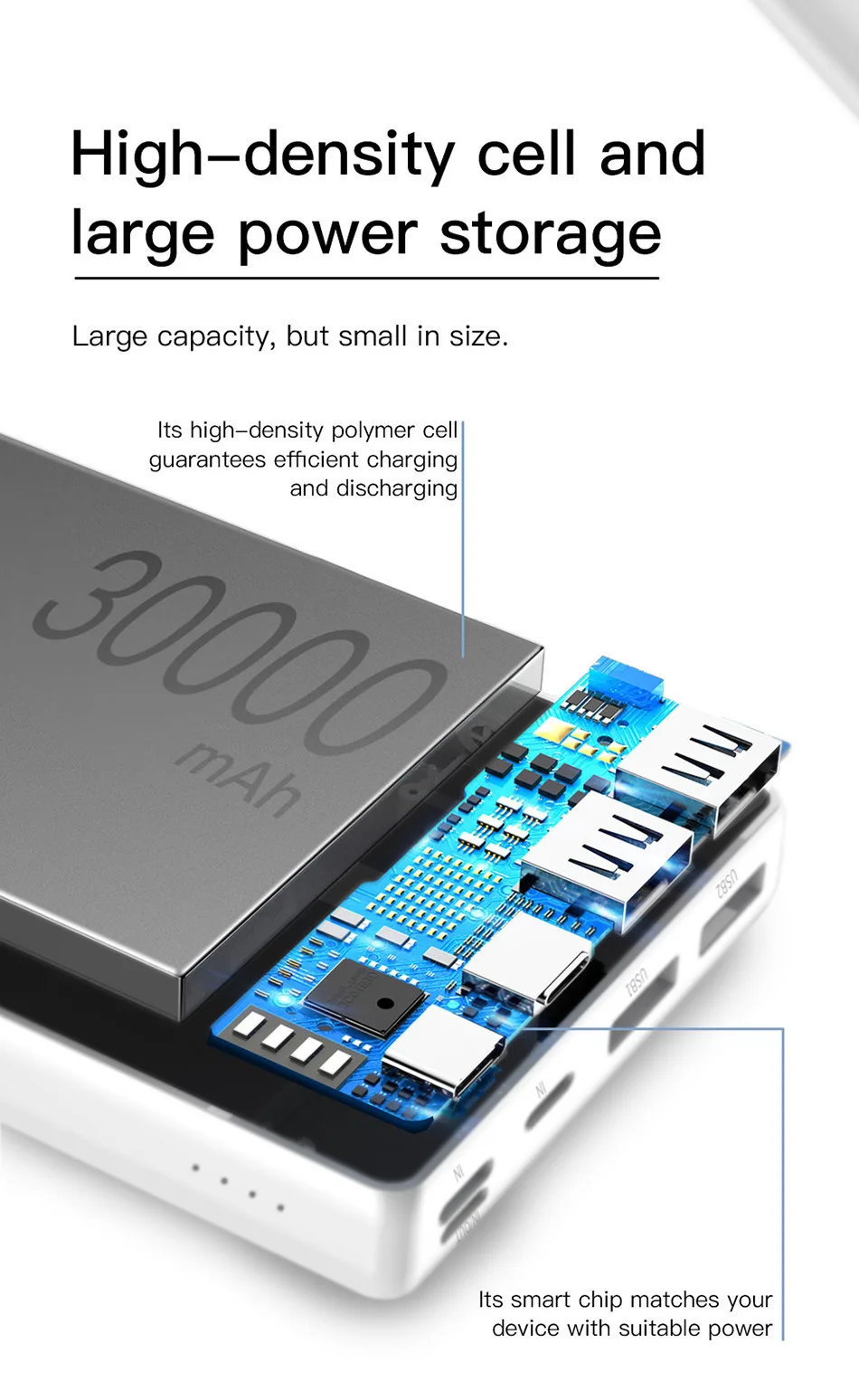 Внешний аккумулятор Baseus, ёмкость 30000мАч, портUSBC, подойдёт для iPhone12Pro и Xiaomi 30000 мАч Powerbank USB C Fast Poverbank для Xiaomi iPhone 12 Pro Портативное внешнее зарядное устройство Pover Bank
