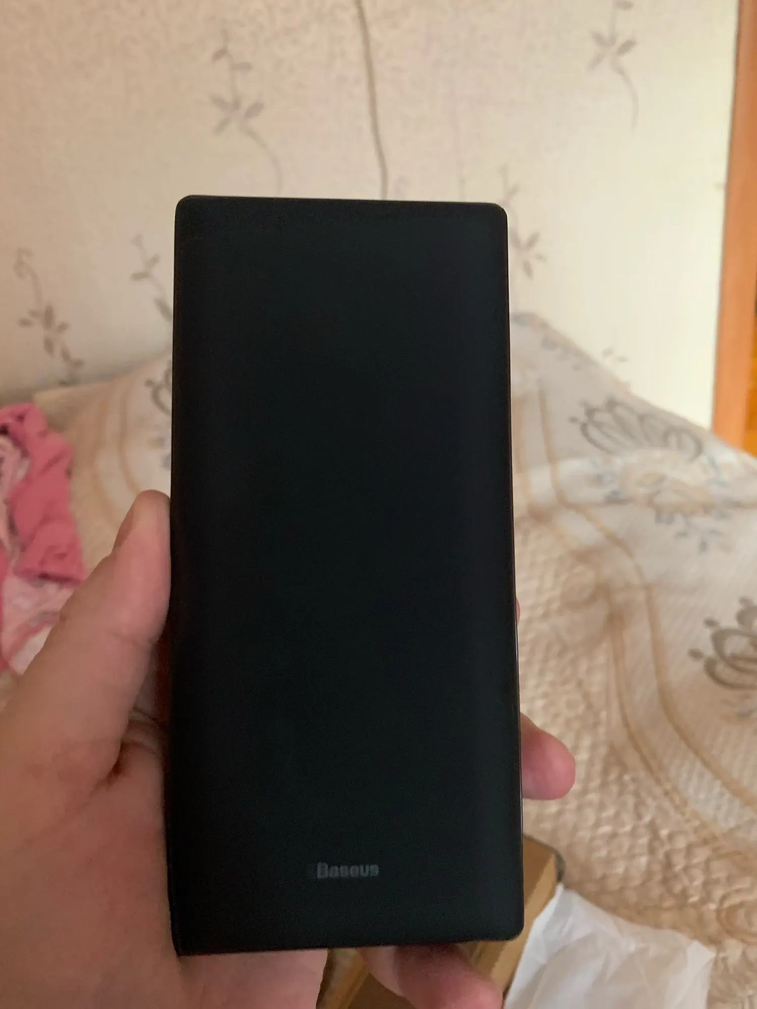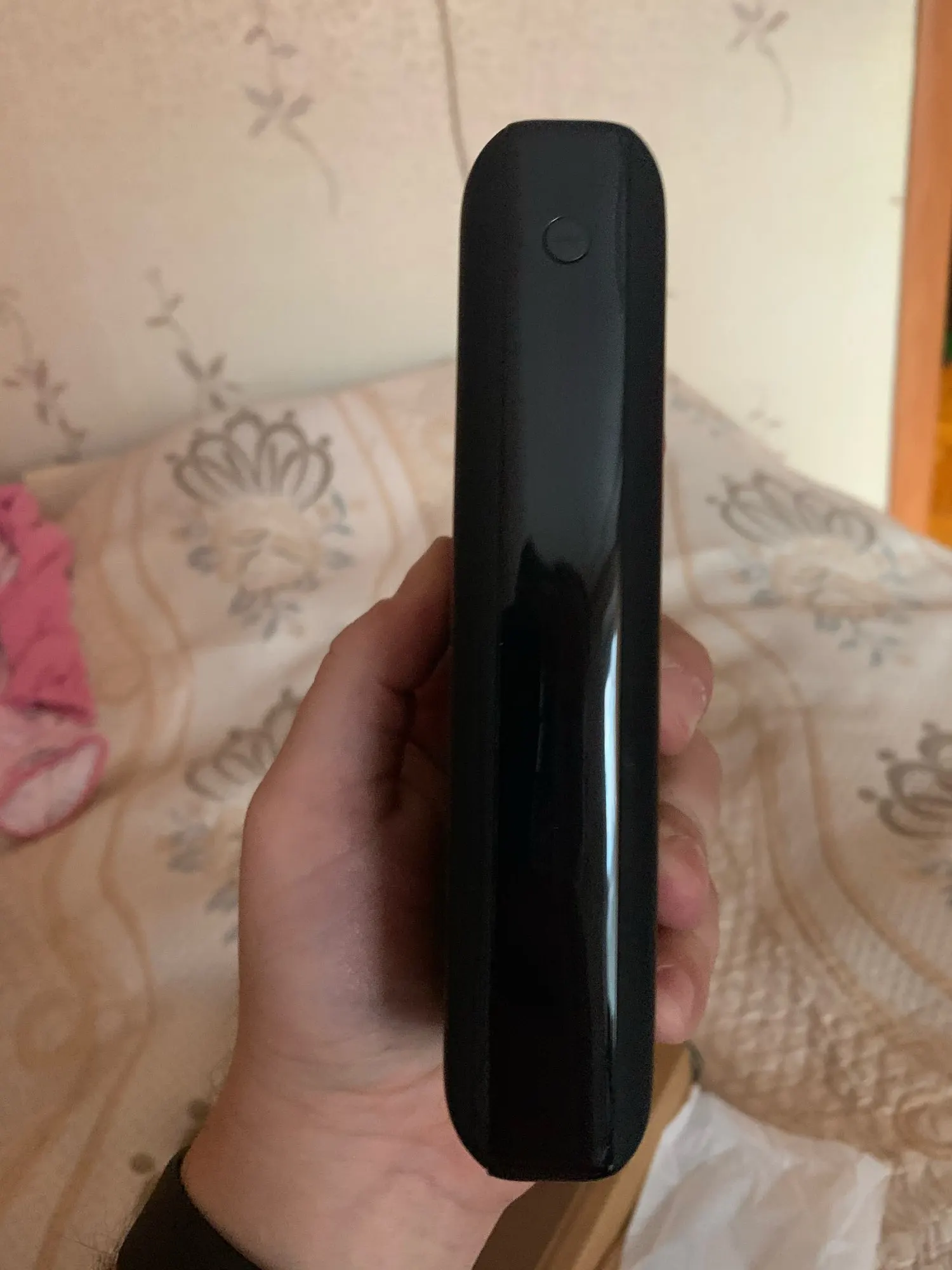 Очень долгая доставка (72 дня). Доставили до квартиры курьером. По трек-коду отслеживалась, но с большими пробелами по времени. Качество сомнений не вызывает, все аккуратно. Внешний вид приятный. Боковые торцы глянцевые. Верх и низ матовые и очень маркие. После взятия в руку сразу же остаются следу, это слишком раздражает. По весу 650 грамм. Думал буду брать с собой в поездки, но уже сомневаюсь. После вскрытия показал зарядку 75 процентов. Контроль по светодиодным индикаторам. На вскидку такой вариант не очень удобен. Кабеля в комплекте не было. Работает достаточно неплохо. Проверил на зарядке телефона. 50 процентов зарядил минут за 30-40. Покупкой в целом доволен. Легкое разочарование конечно есть из-за маркости и индикации, но это не критично. Товар рекомендую, но лучше брать белый цвет из-за маркости. Товар и продавца рекомендую. Продавцу Спасибо.