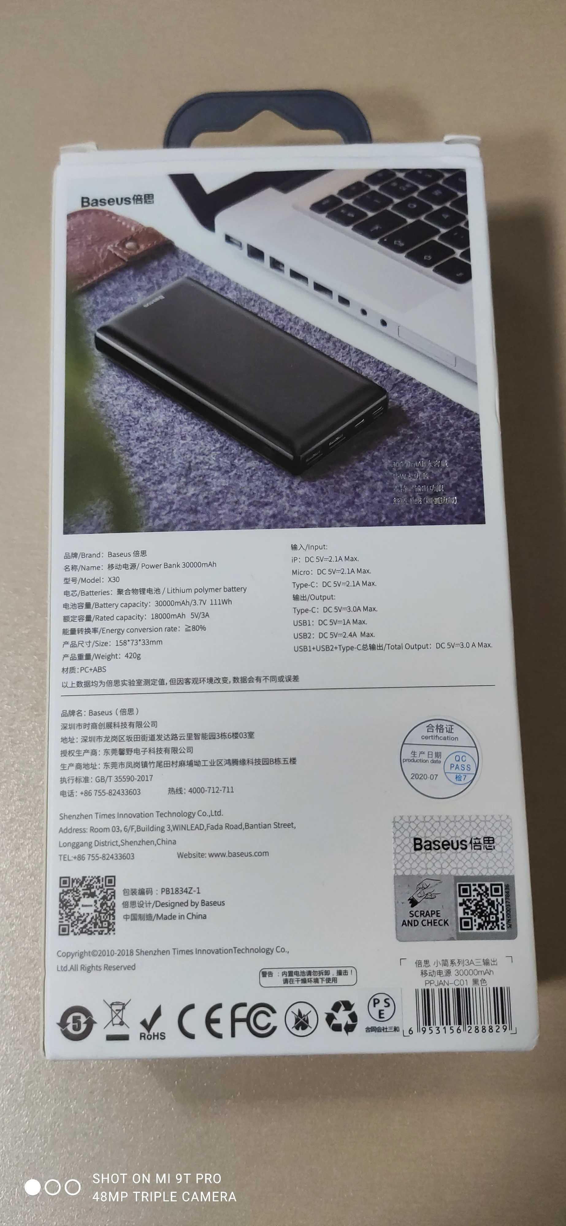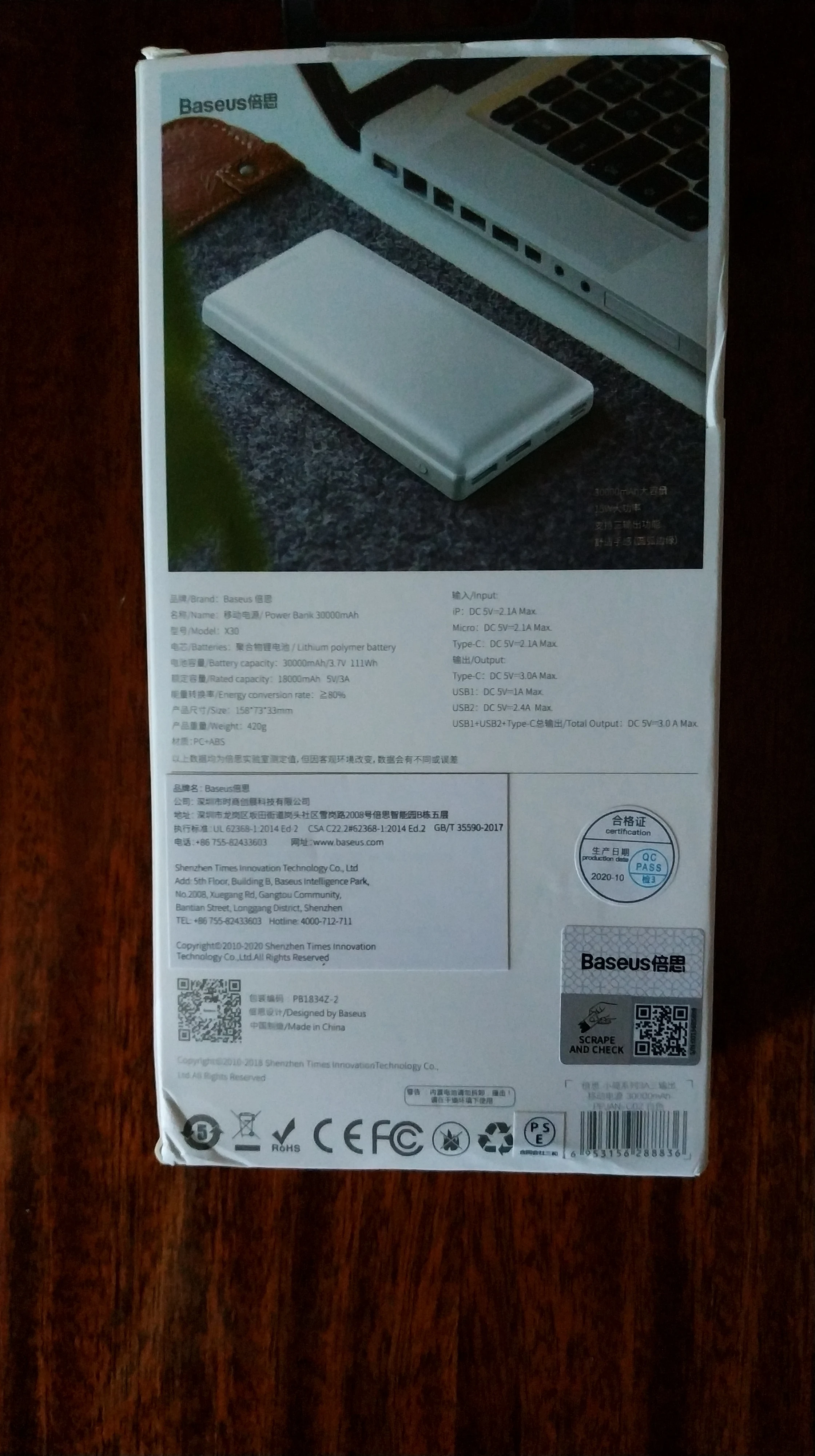 Заказ от December 21, 2020, получил January 5, 2021, Power Bank был куплен за 11$, на скидках. На лицевой стороне написано Baseus, вес 645 грамм. Заряжал 11 часов. Несмотря на то что такой тяжёлый всего три раза хватило зарядить свой планшет по 6000 мАмп. Спасибо большое за быструю доставку. Но этот накопитель энергии, мне кажется xyёвый. Ну купите и xyйнёй пострадайте. Спасибо за внимание.