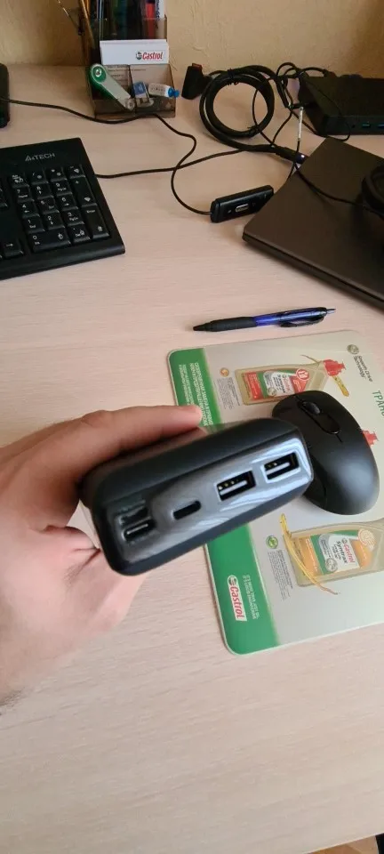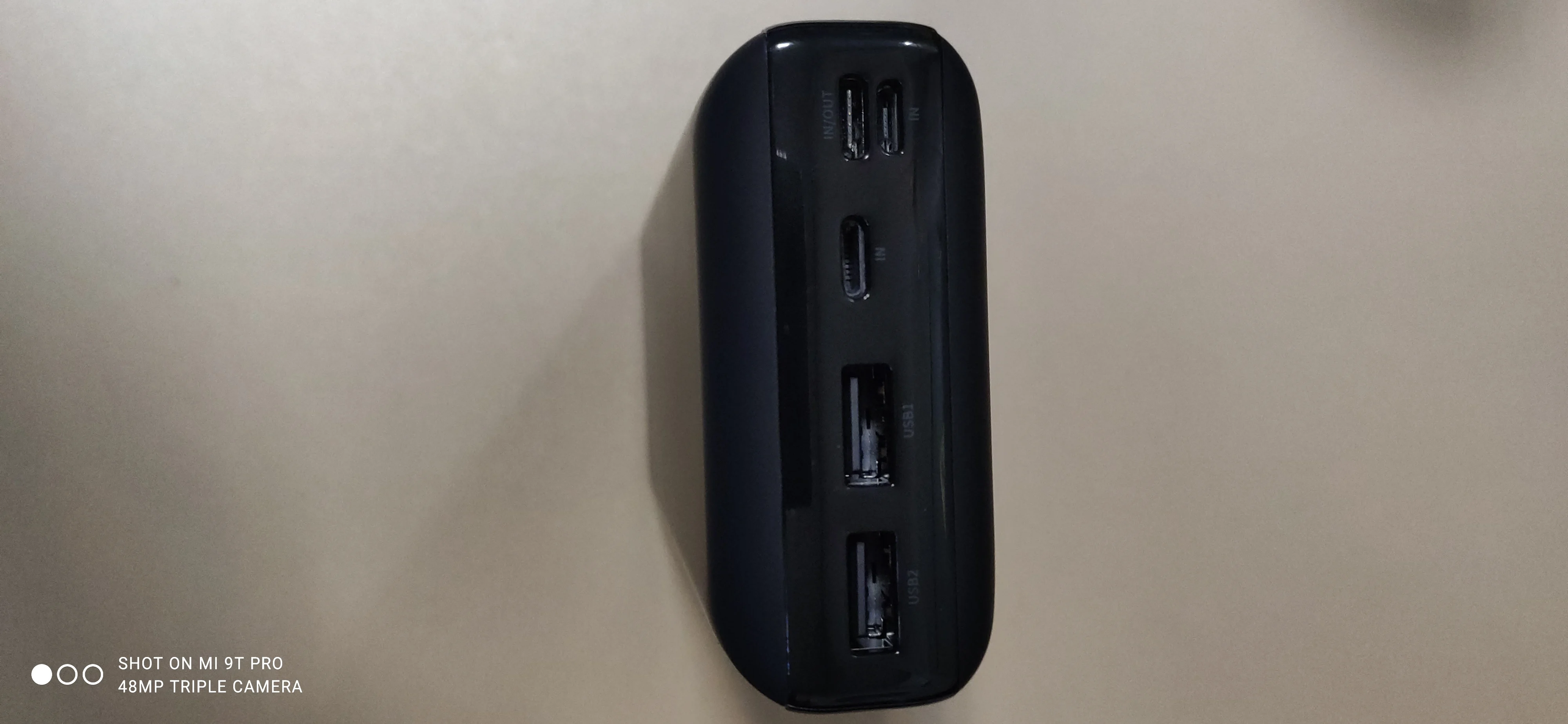 Отличный Пауэр бэнк. Увесистый, 620 граммов. Объем явно больше 20к, сравнивала с другим банком. 5 разъемов - 2 на вход, 2 на выход и 1 на вход/выход. Есть type C. Сбоку световой индикатор уровня заряда из 4 лампочек. Хорошая штука. Доставка курьером до двери.